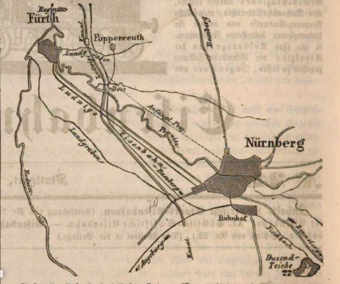 | Dateiinfo (Bild-Unterschrift und Info-Box, automatisch erstellt) | Planzeichnung über den Verlauf der Ludwig-Süd-Nord-Bahn im Bereich Nürnberg/Fürth, 1845 Urheber: unbekannt<br><br>Lizenz: CC BY-SA 3.0 | ||