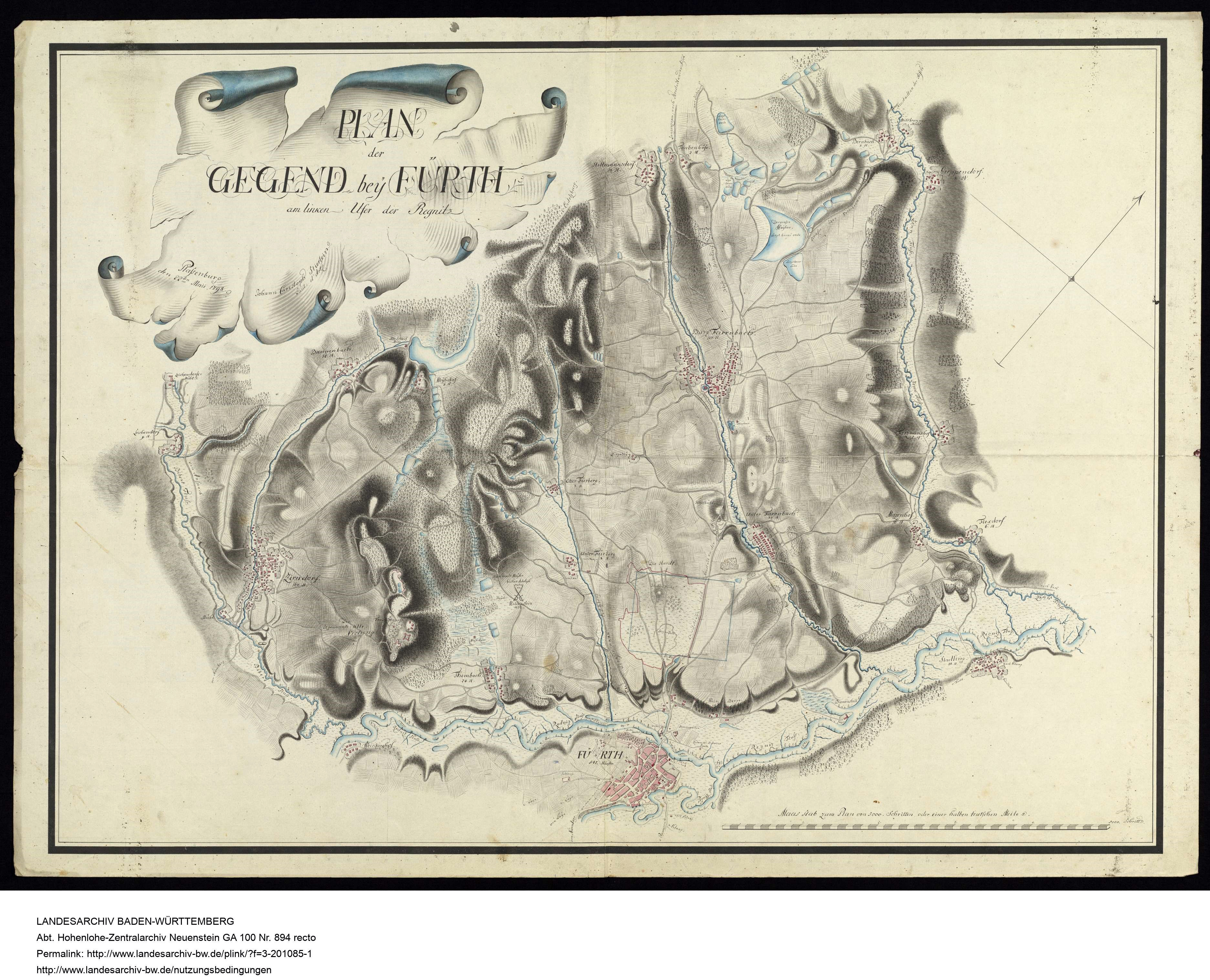 | Beschreibung | "Plan der Gegend bey Fürth am linken Ufer der Regnitz", 1798 | ||