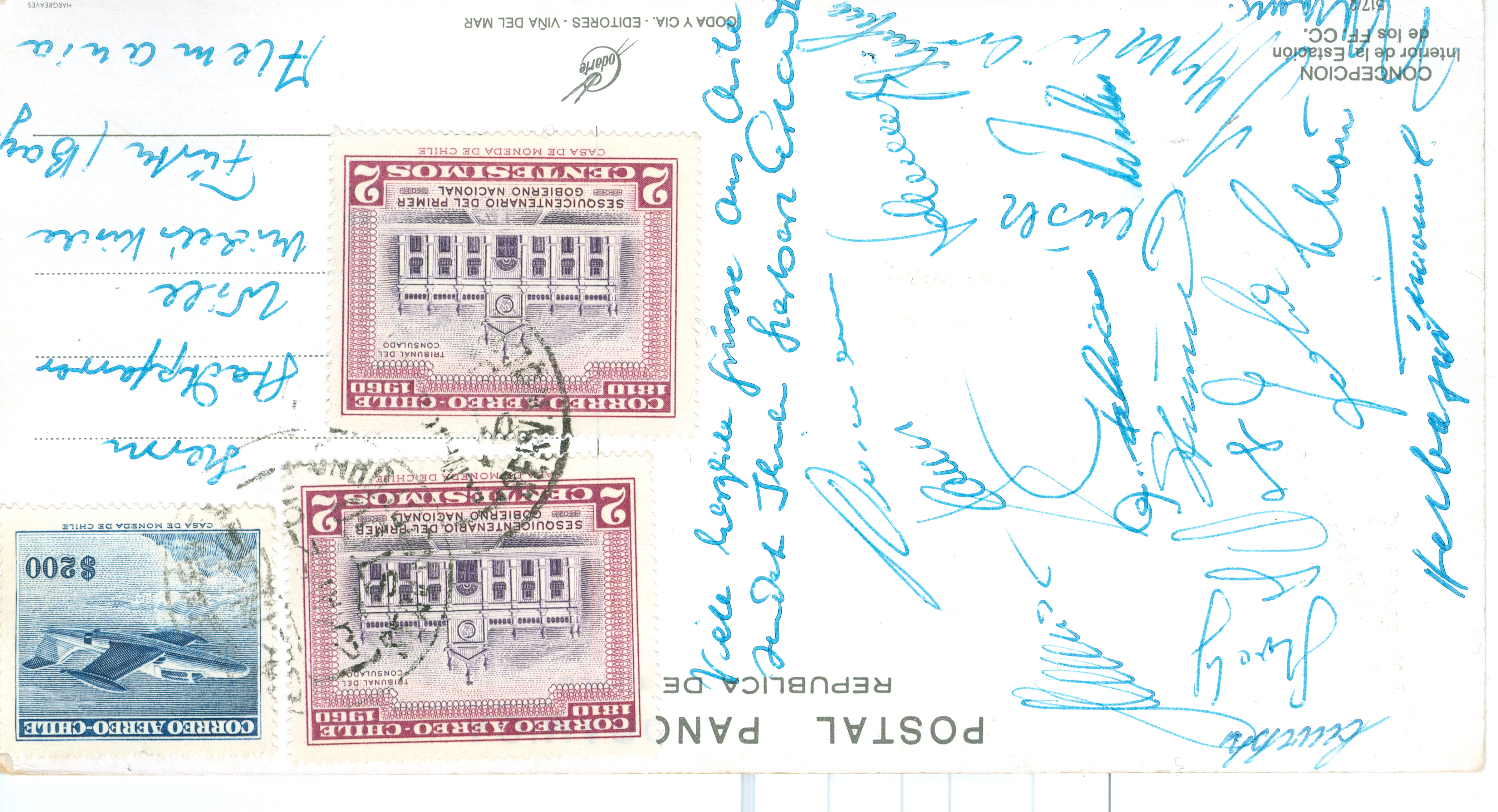 | Dateiinfo (Bild-Unterschrift und Info-Box, automatisch erstellt) | Postkarte von Herbert Erhard an Pfarrer Karl Will aus Chile Urheber: Herbert Erhard<br>Lizenz: CC BY-SA 3.0 | ||