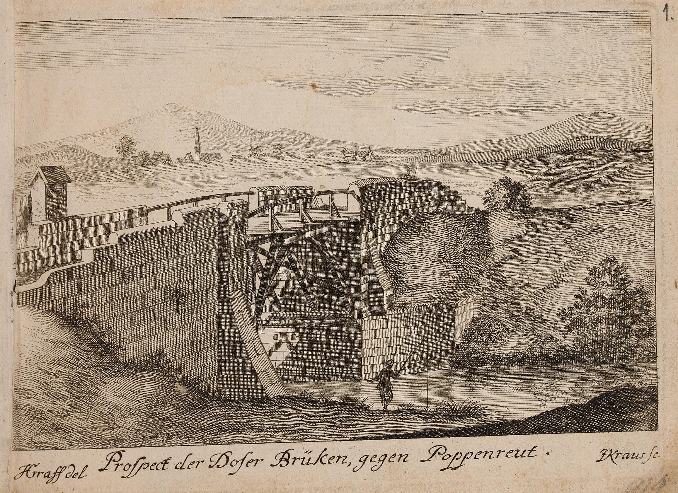 | Beschreibung | Prospect der Doser Brüken, gegen Poppenreut, 1688 | ||