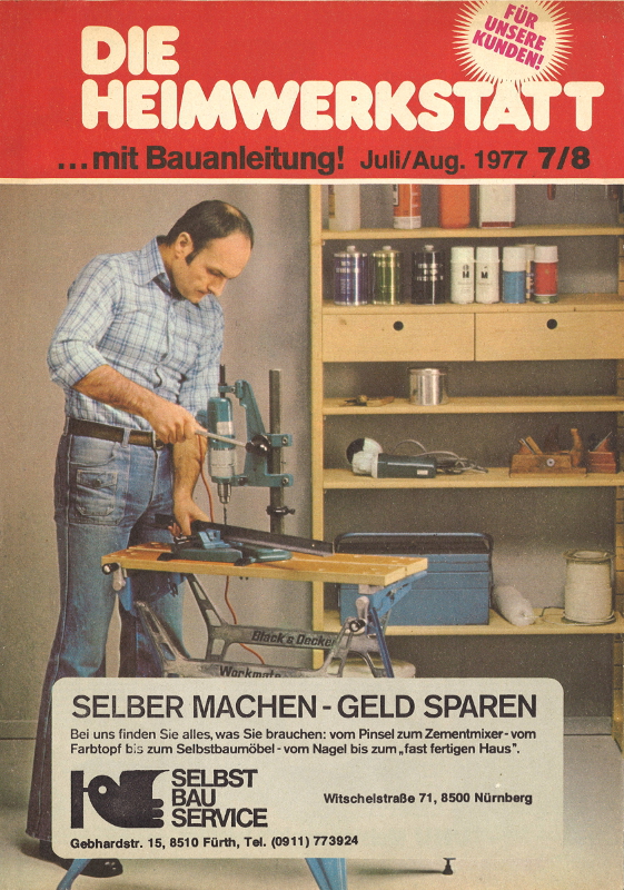 | Dateiinfo (Bild-Unterschrift und Info-Box, automatisch erstellt) | Die Heimwerkstatt - Titelseite Urheber: Verlagsgesellschaft Rudolf Müller GmbH & Co<br><br>Lizenz: Copyright | ||