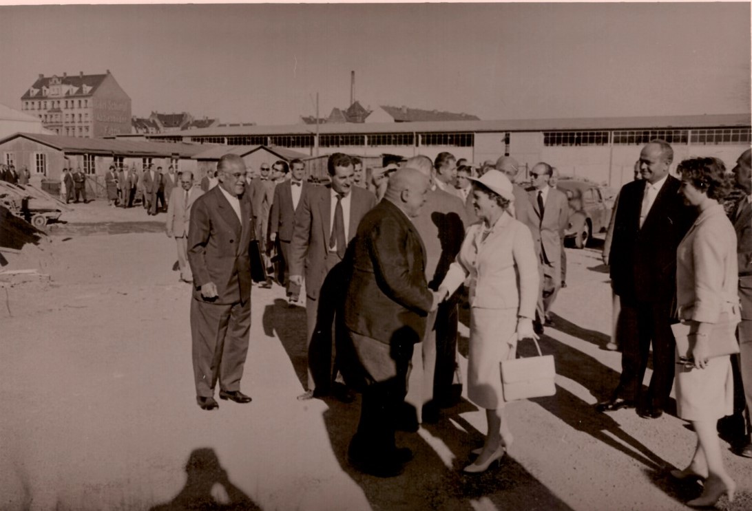 | Beschreibung | Gustav und Grete Schickedanz bei einem Ortstermin in Nürnberg auf dem Areal des neuen Großversandhauses. Im Hintergrund ein Wohnhaus an der Adam-Klein-Str. | ||