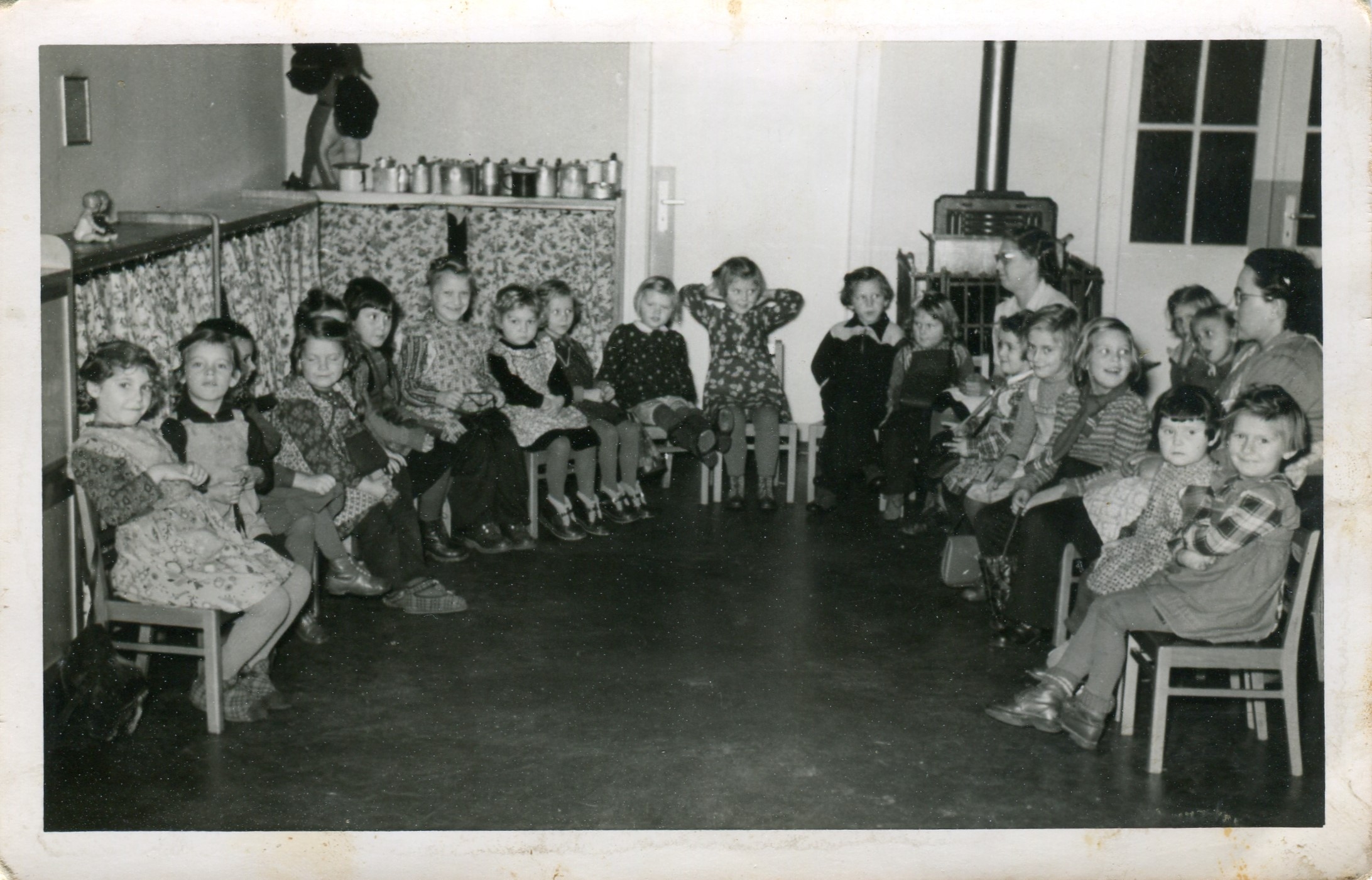 | Beschreibung | Kindergruppe im Quelle-Kindergarten an der Glückstraße, 1952 | ||