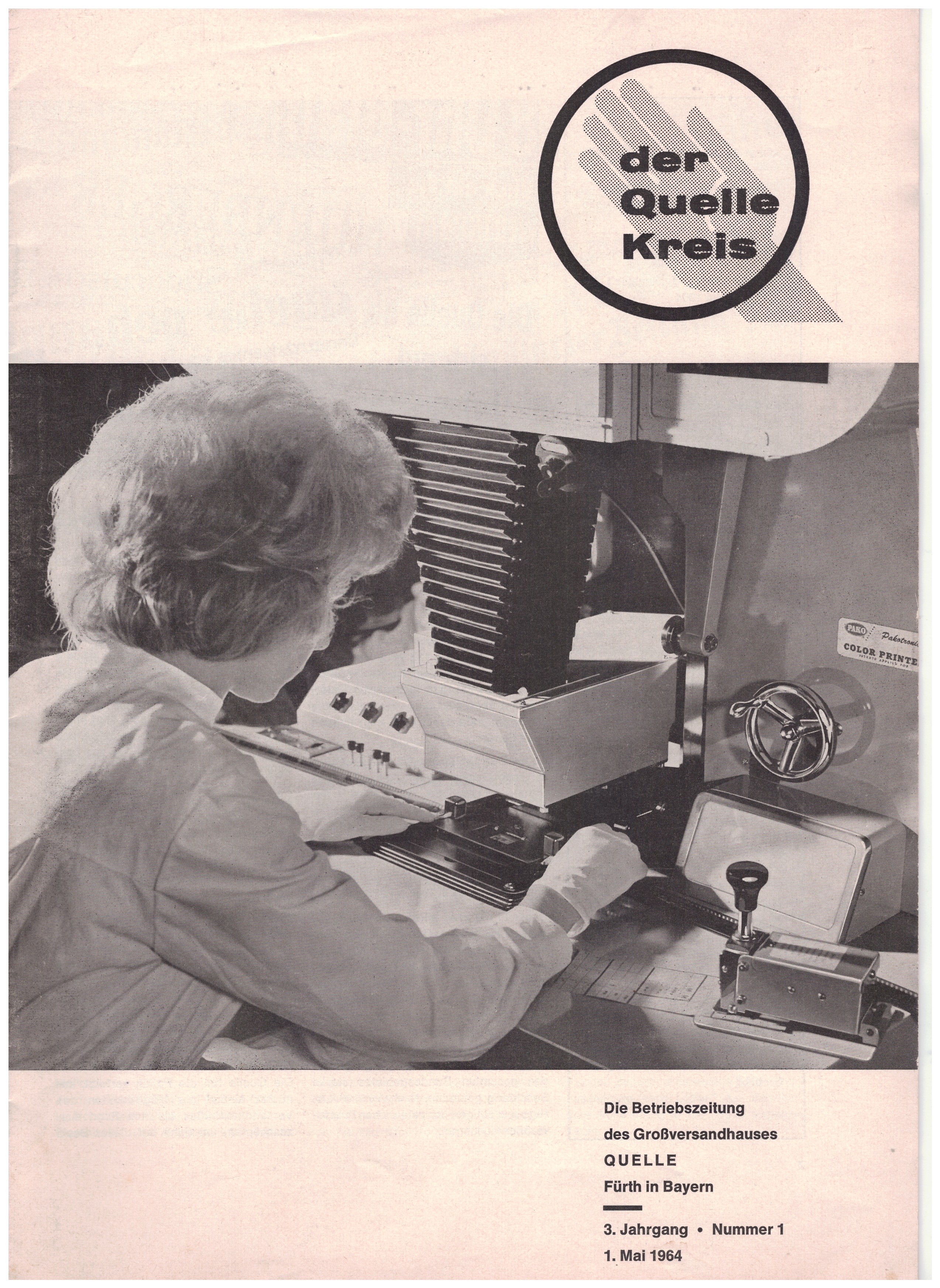 | Beschreibung | Betriebszeitung des Großversandhauses QUELLE 3.Jahrgang, Nummer 1 | ||