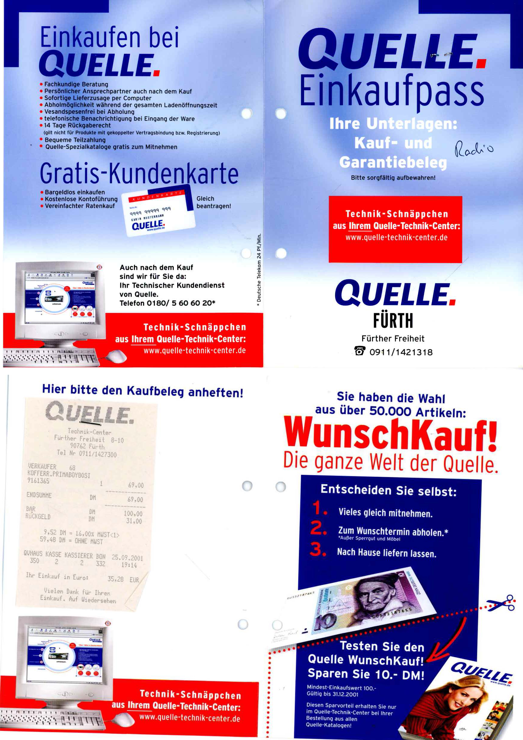 | Beschreibung | Rechnung von der Fa. Quelle im ehem. Quelle-Kaufhaus an der Fürther Freiheit, 2001 | ||