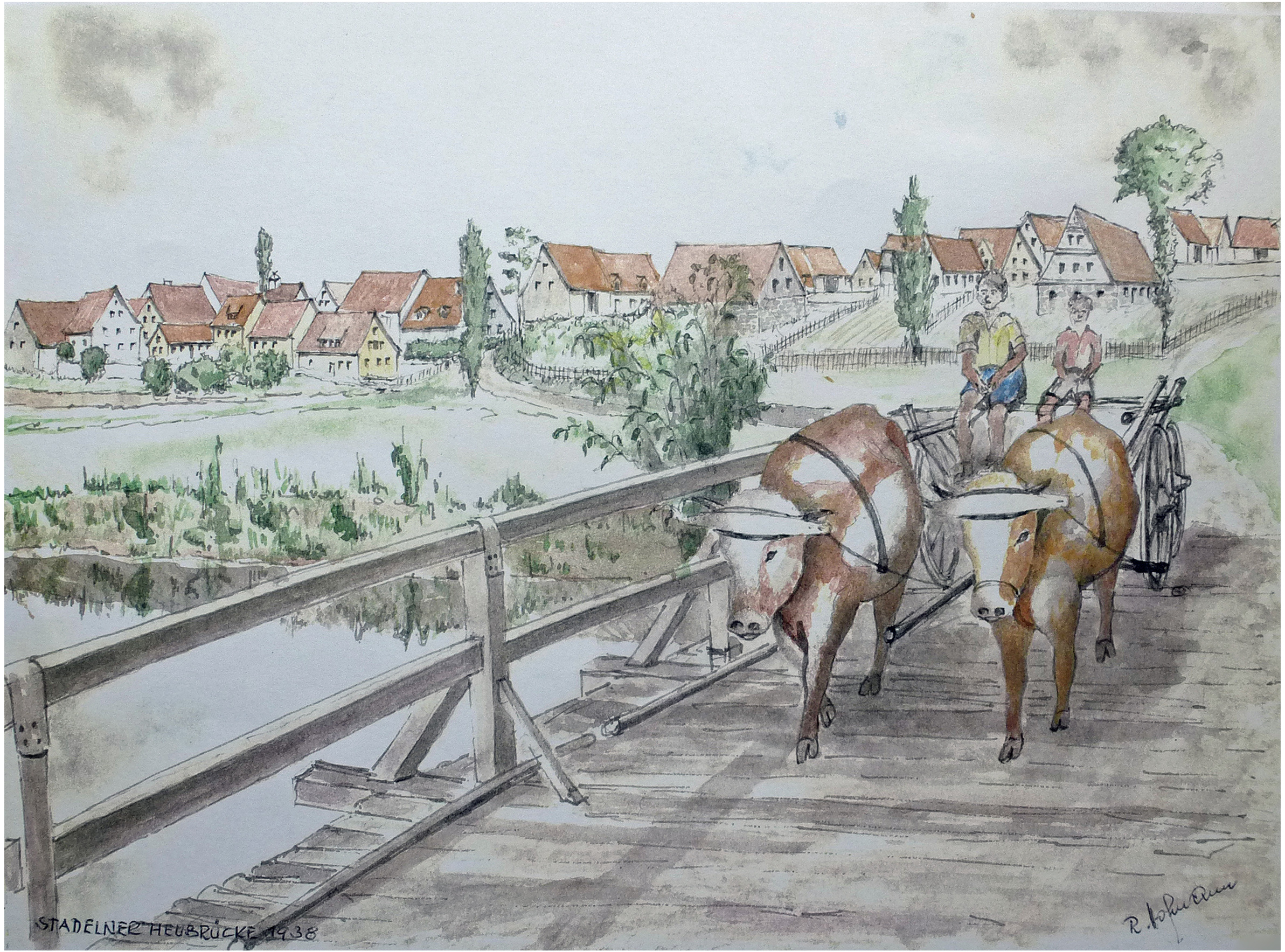 | Beschreibung | Die Stadelner Heubrücke, 1938; Gemälde von Rudolf Hofmann | ||