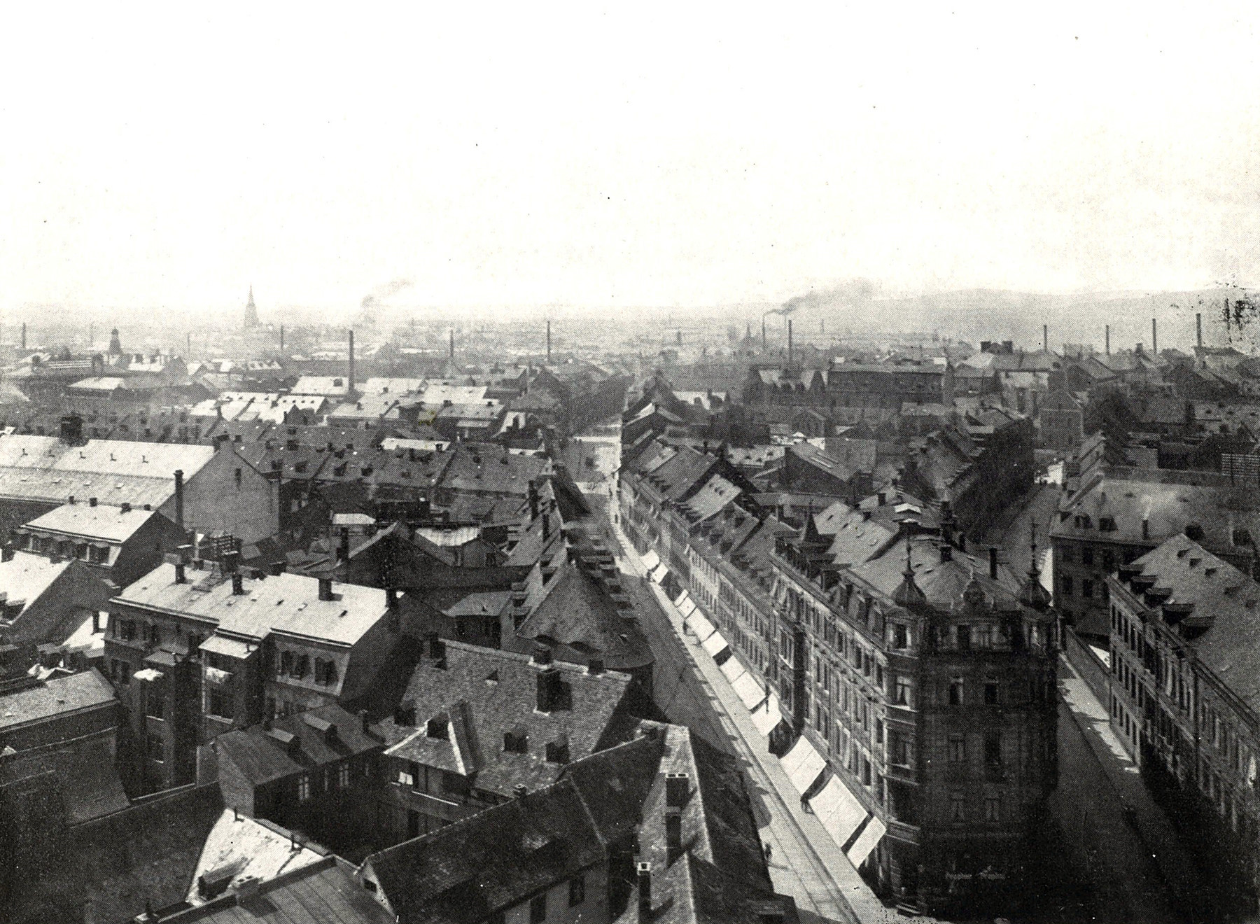 | Beschreibung | Blick vom Rathausturme gegen die Neustadt und Schwabacher Straße, Aufnahme um 1907 | ||