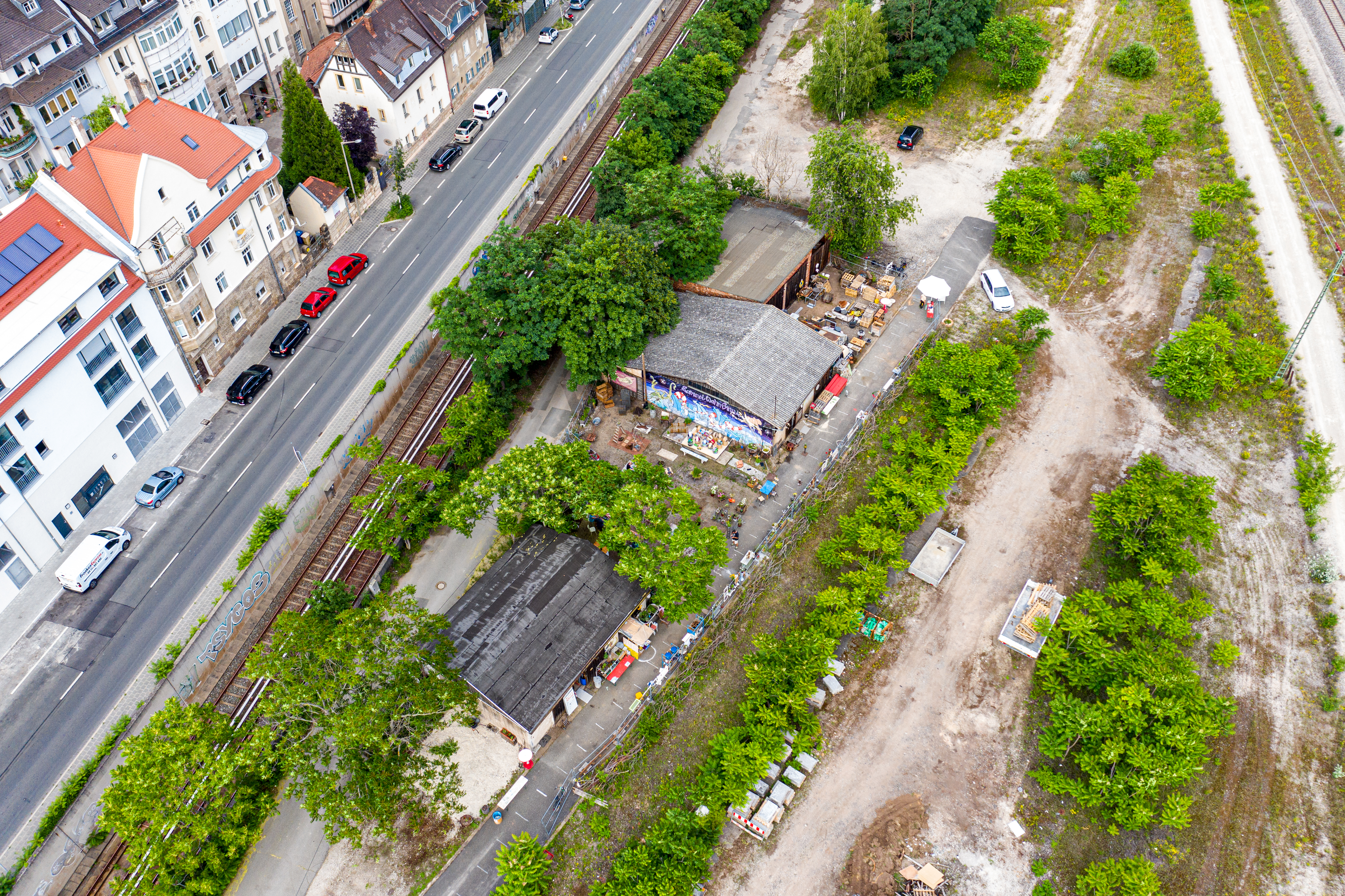 | Beschreibung | Lagerverkauf des Fürther Unternehmens Raum.StREBEN auf dem ehem. Gelände des Güterbahnhofs, Juni 2020 | ||