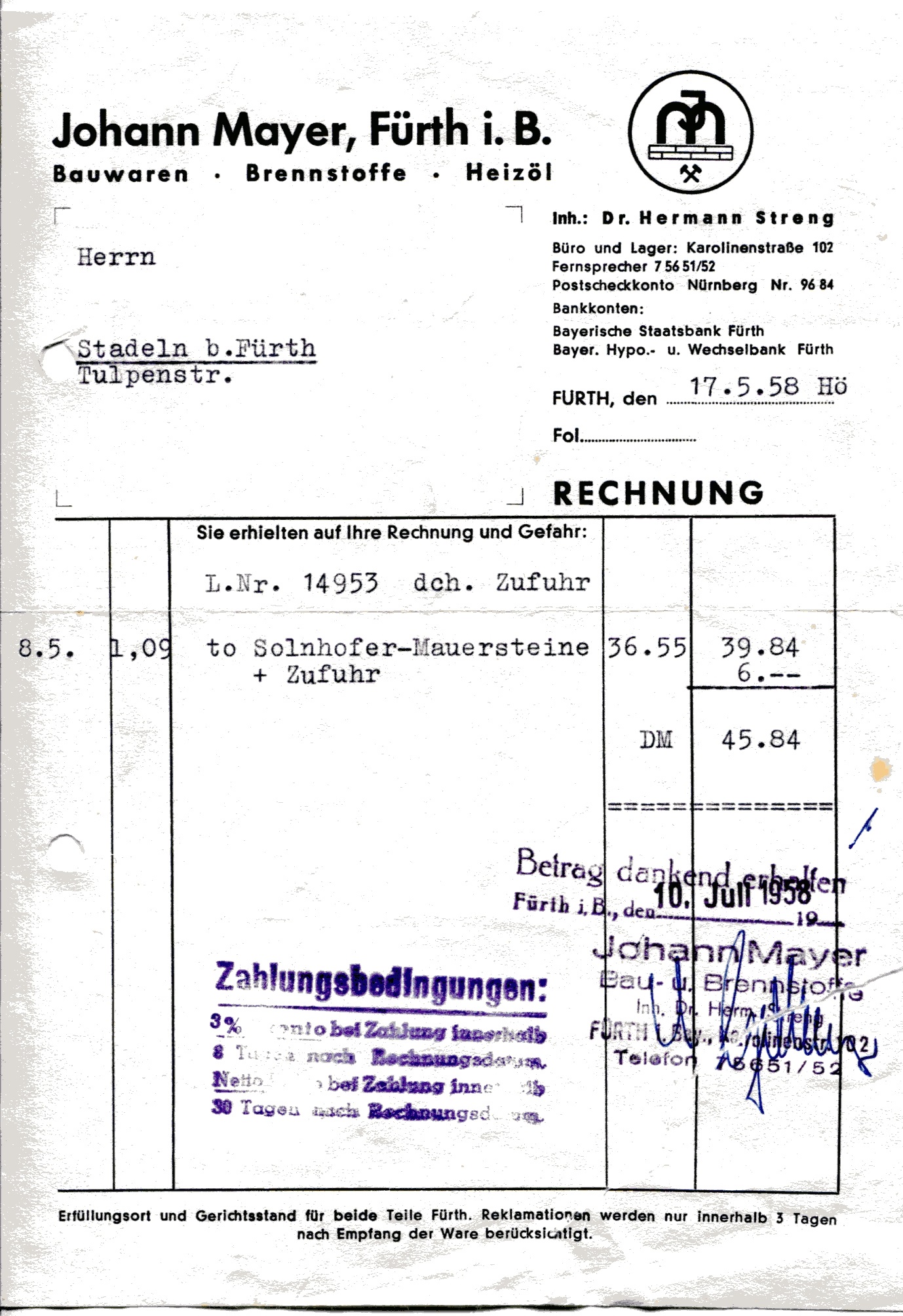 | Datei:Rechnung Johann Mayer 1958.jpg | |||