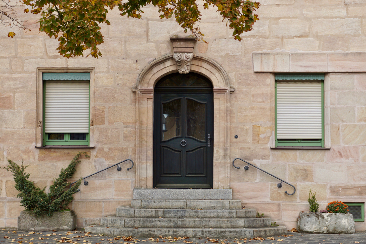 Wohnhaus Regelsbacher Straße 17, Detail giebelseitiger Hauseingang; Foto: Aquilex vom 22.10.2018