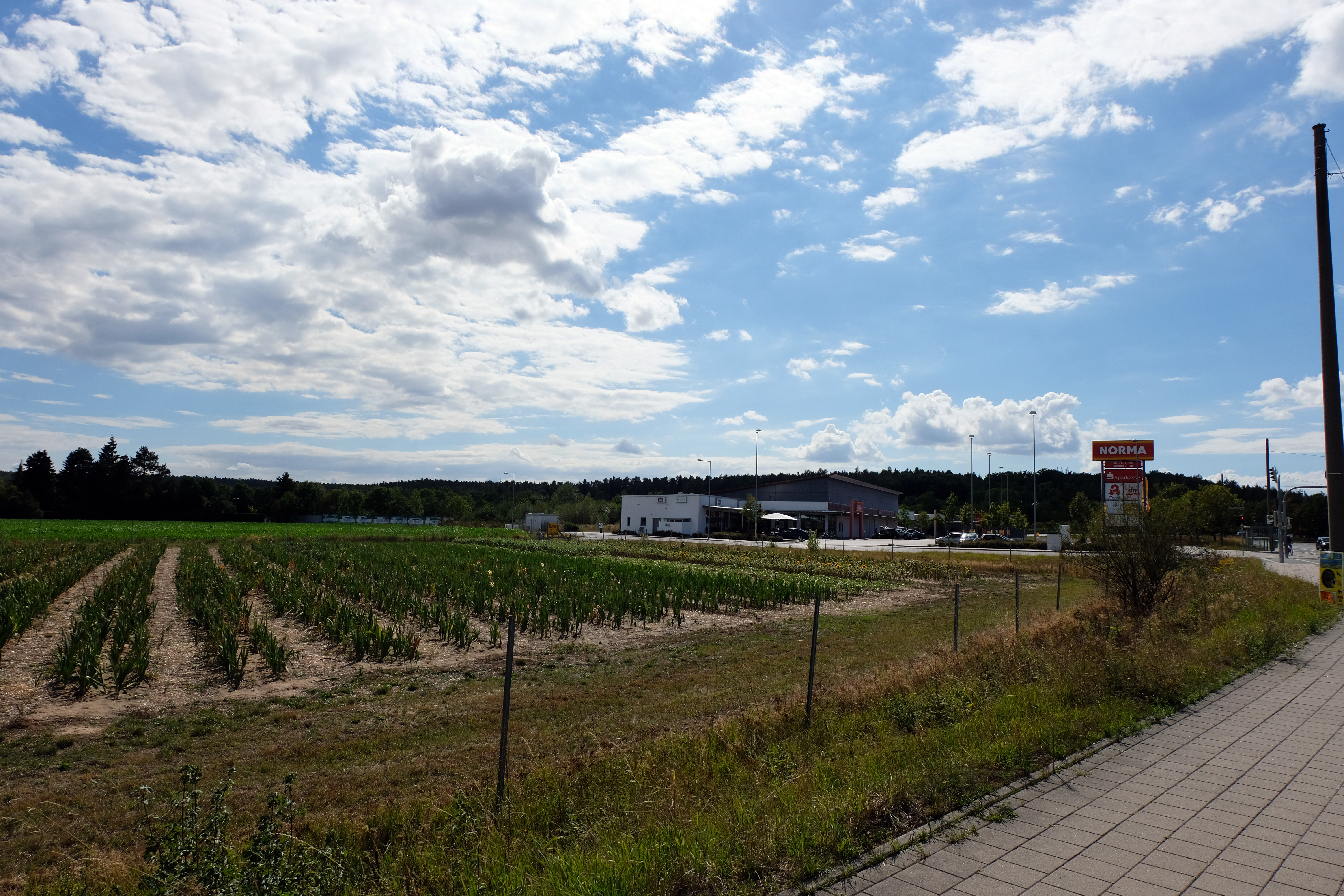 | Beschreibung | Reichsbodenfeld, von der Breslauer Straße aus gesehen nach Westen - im Hintergrund die Norma, August 2020 | ||