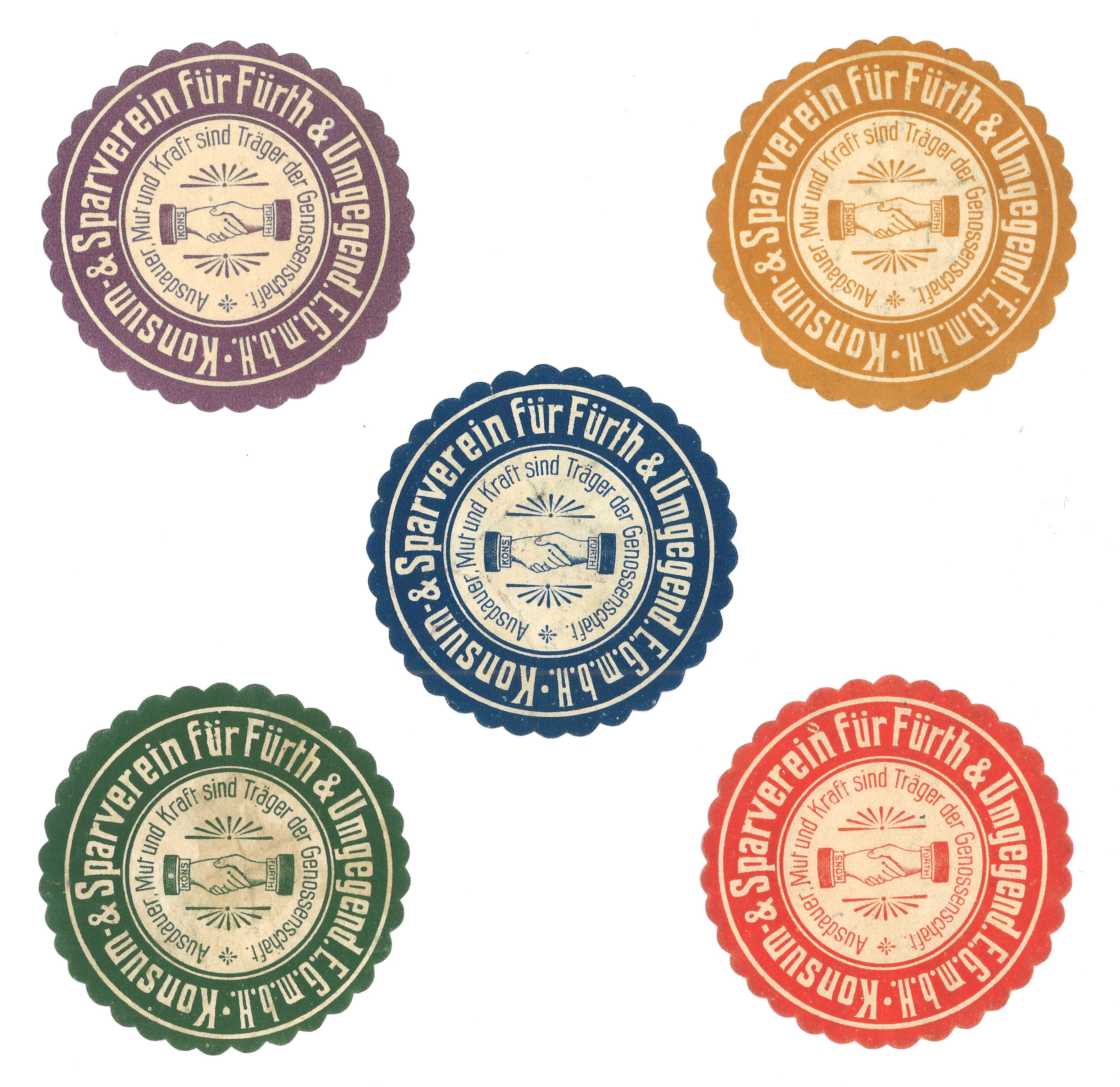 | Beschreibung | Historische Reklamemarken des Vereins Konsum und Sparverein Fürth & Umgebung | ||