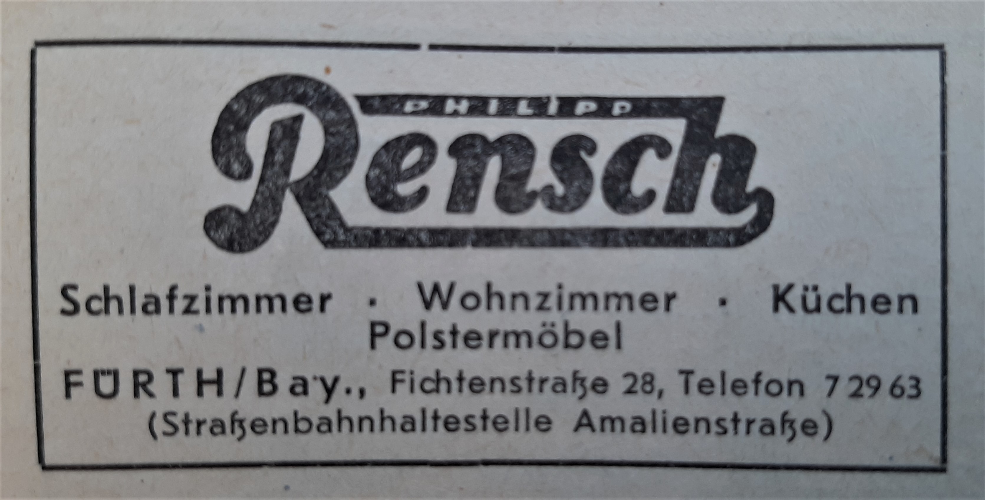 | Beschreibung | Werbeanzeige der Firma Möbel Rensch in der Fichtenstraße 28,1949 | ||