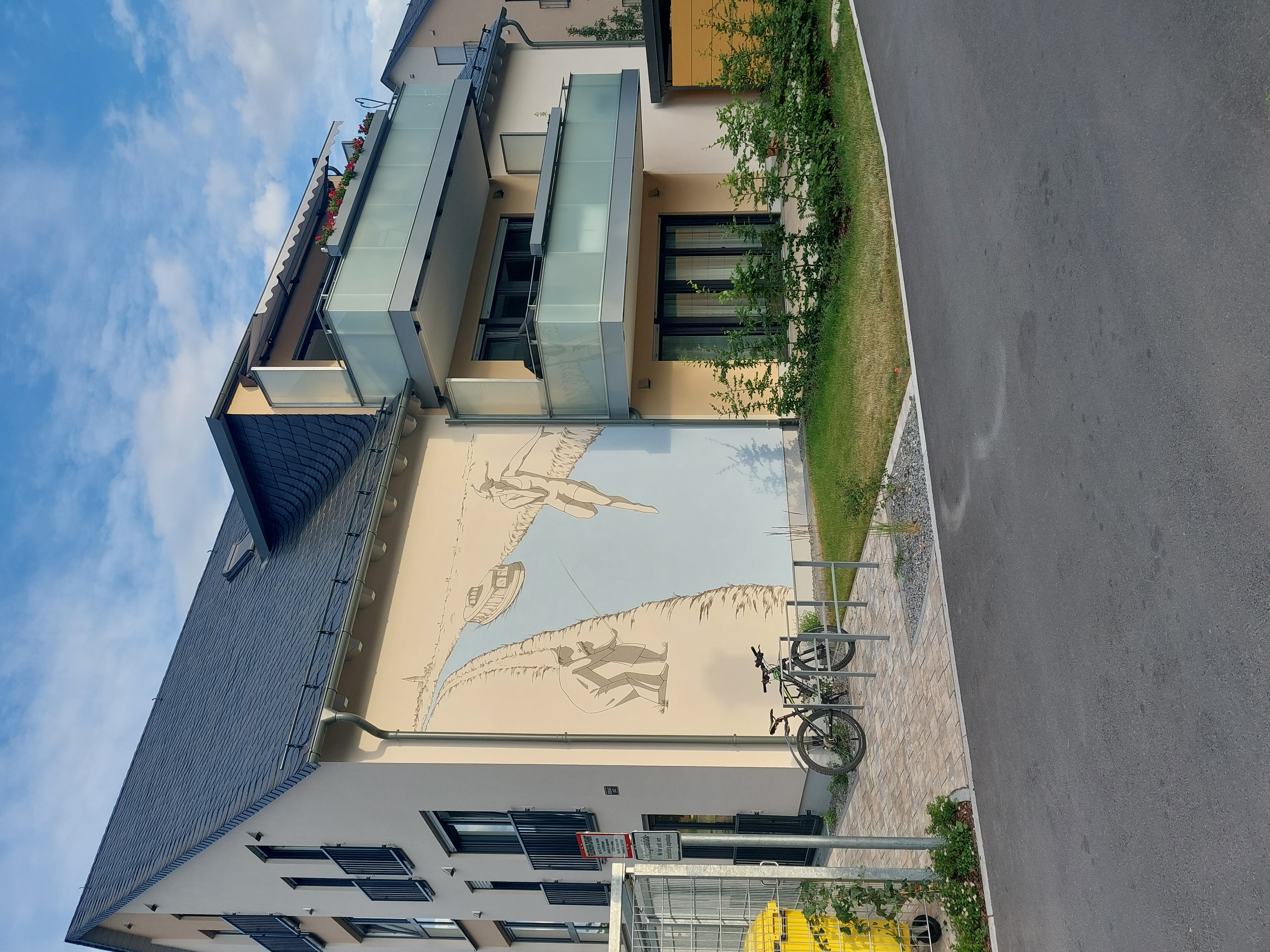 | Beschreibung | Neubau in der Ronhofer Hauptstraße mit Kunst von André Jeschar, Juni 2023 | ||