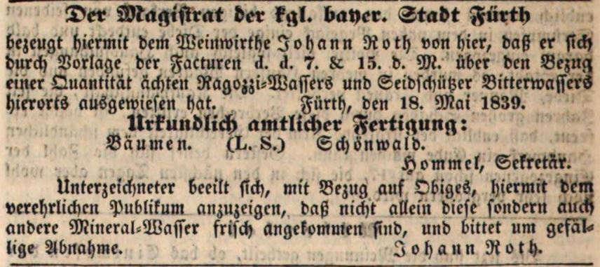 | Quellangaben | Fürther Tagblatt, 21.05.1839 - online-Digitalisat | ||