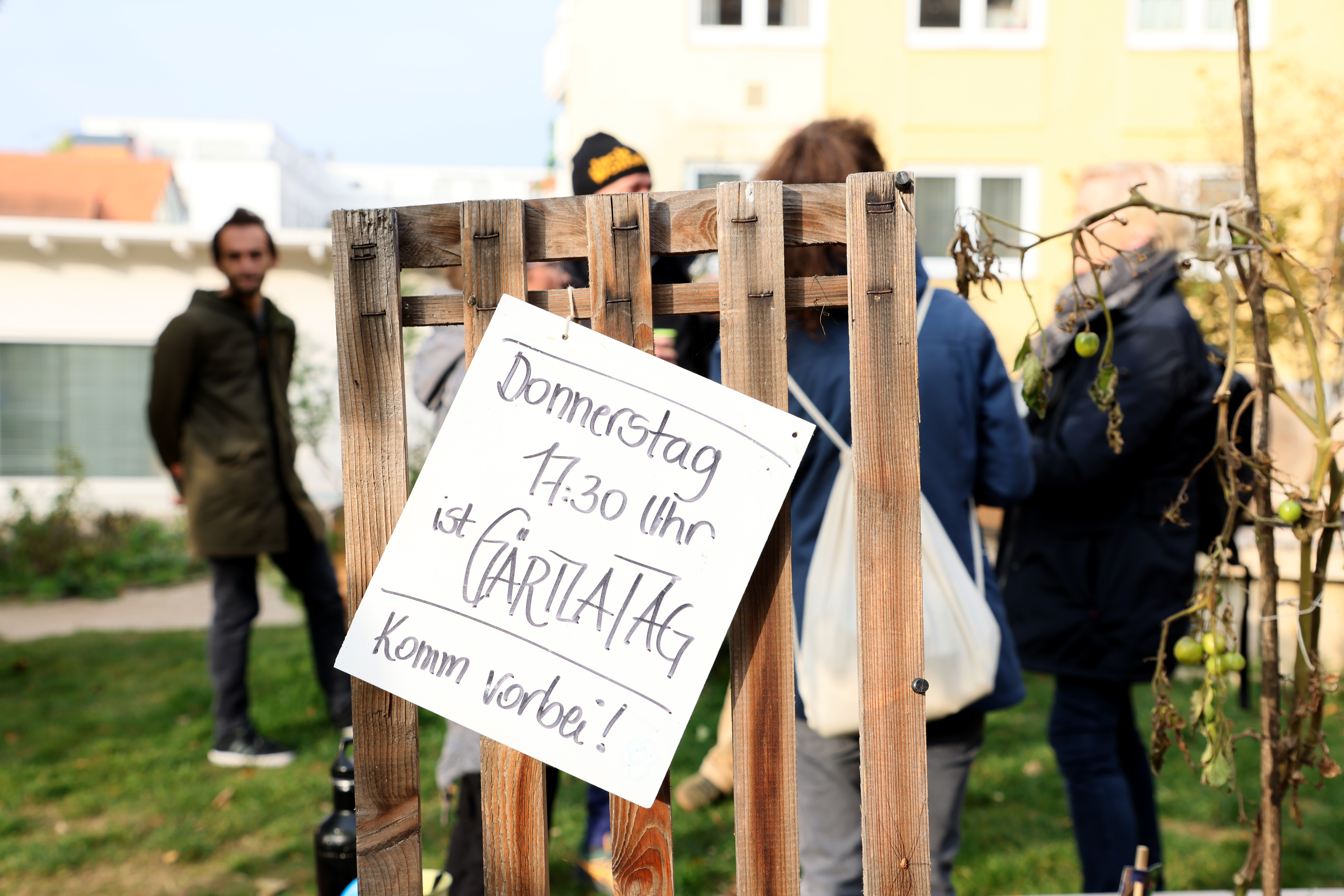 | Beschreibung | Hinweisschild zur aktiven Mitarbeit am Südstadt-Gärtla, Okt. 2021 | ||