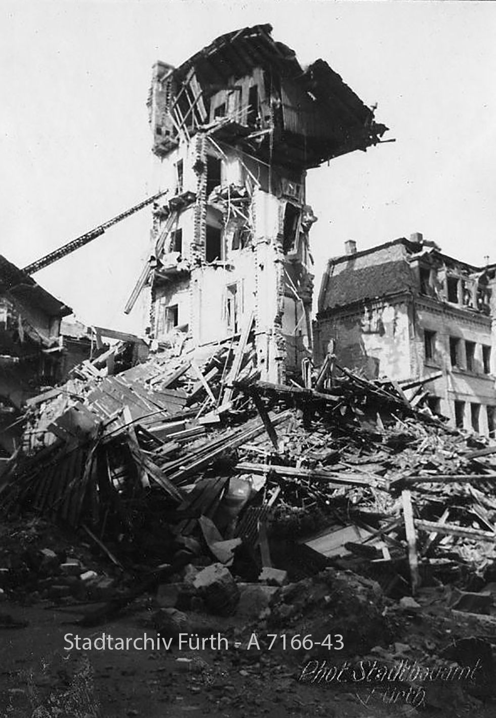 | Beschreibung | Aufnahme aus der Amalienstraße nach dem Luftangriff 8. auf 9. März 1943. Abschnitt zwischen Ludwigstraße und Benno-Mayer-Straße. Rest von Nr. 45 mit Rückgebäude kurz vor dem Einsturz. Heute Amalienstr. 45/47 | ||