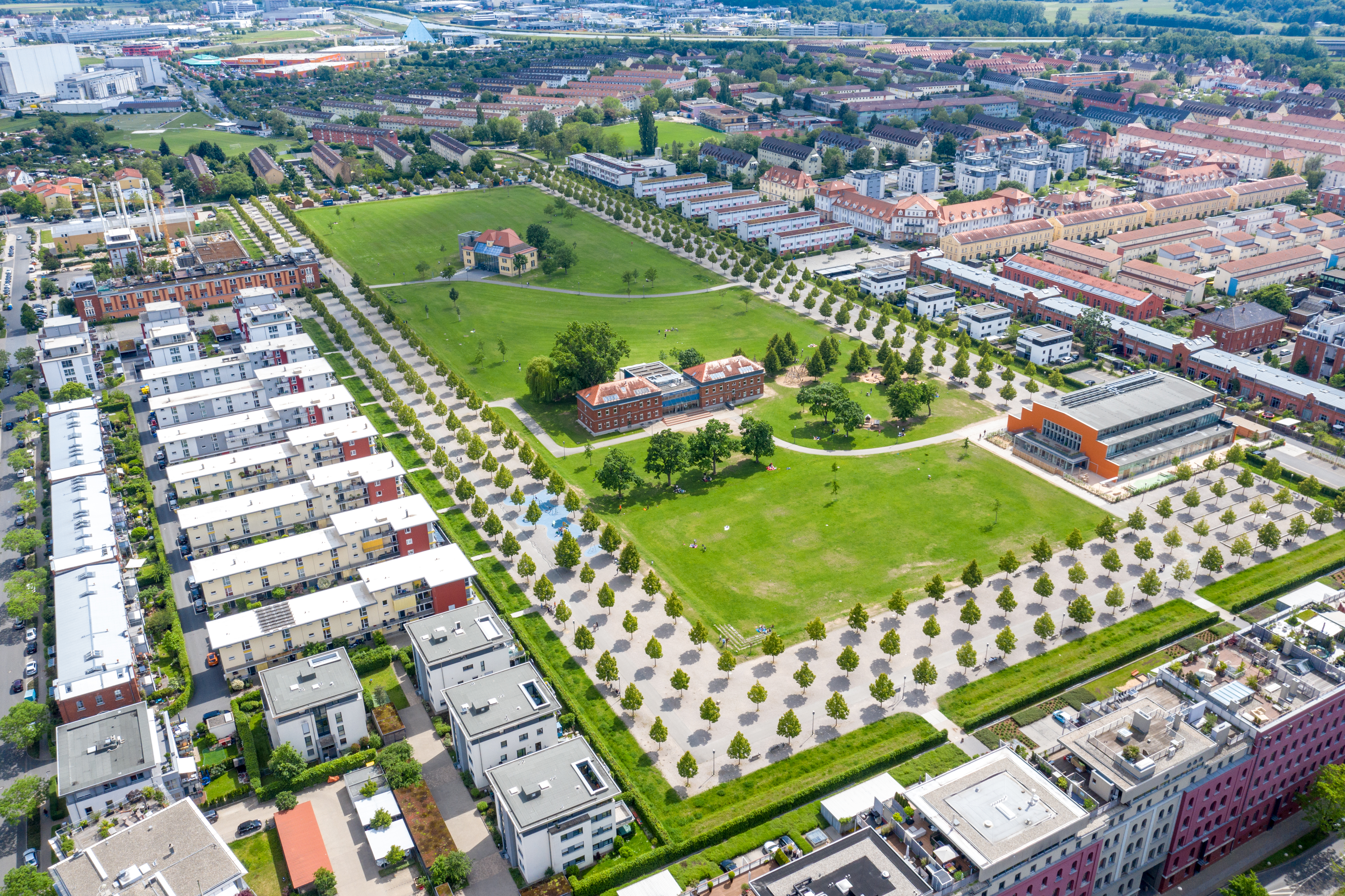 | Beschreibung | Blick in den Südstadtpark über die Flößaustraße, Mai 2019 | ||