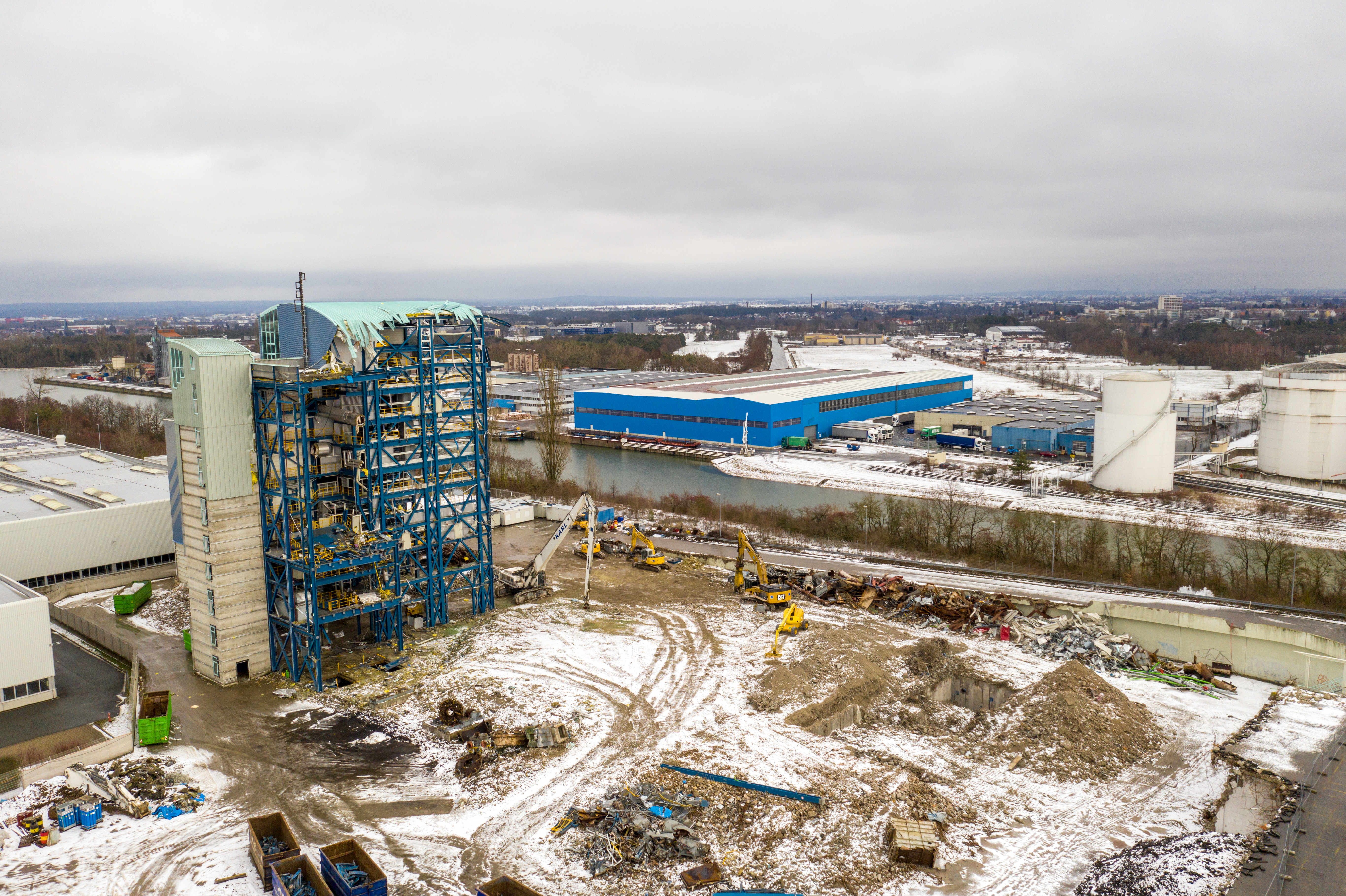 | Beschreibung | Letzte Abrissarbeiten an der Müll-Schwelbrennanlage, Jan. 2019. Heute befindet sich hier der Tiefkühllogistiker Nordfrost. | ||
