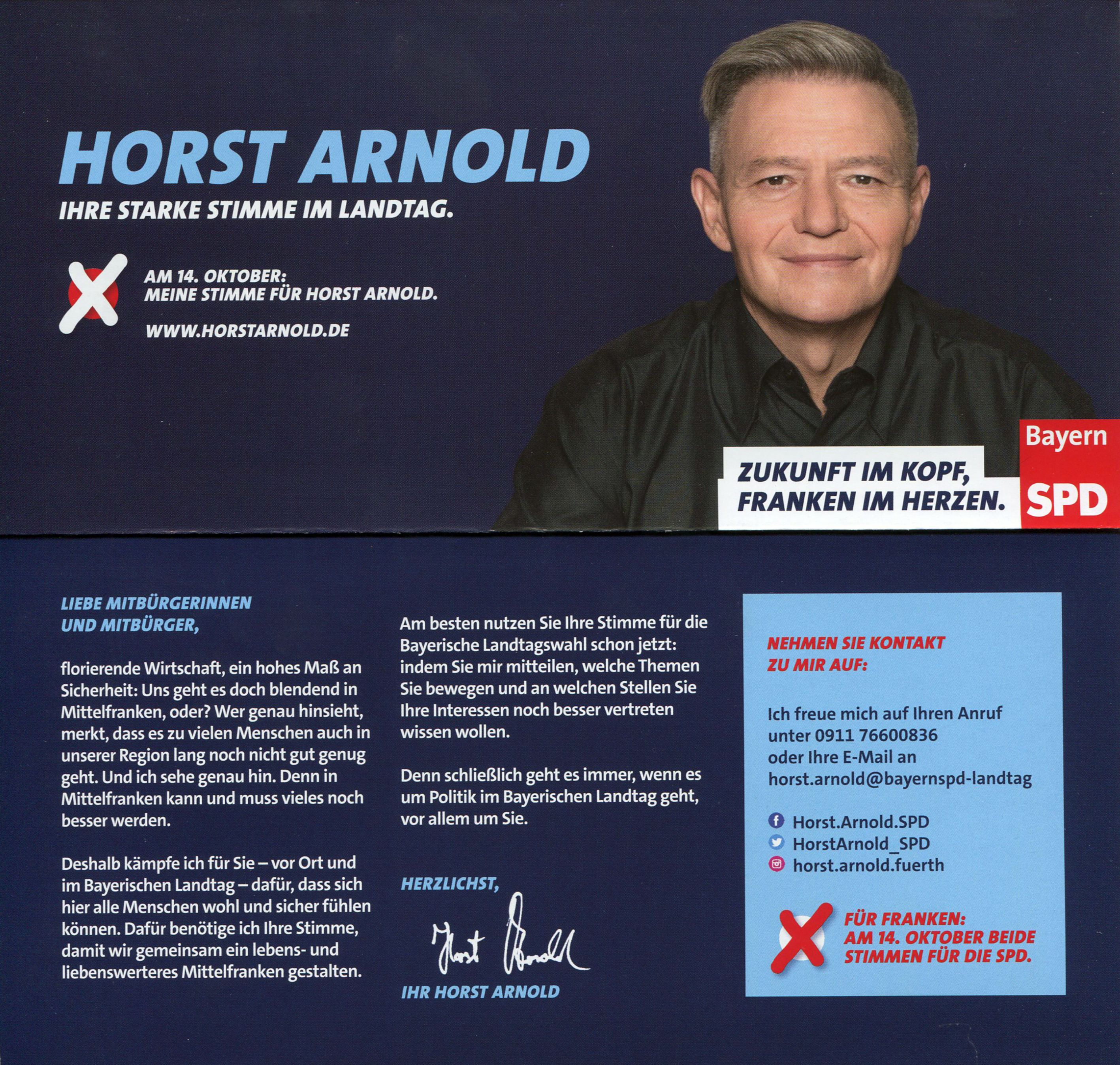 | Dateiinfo (Bild-Unterschrift und Info-Box, automatisch erstellt) | SPD-Wahlkampfflyer von Horst Arnold zur Landtagswahl 2018 Urheber: SPD Fürth<br><br>Lizenz: CC BY-SA 3.0 | ||