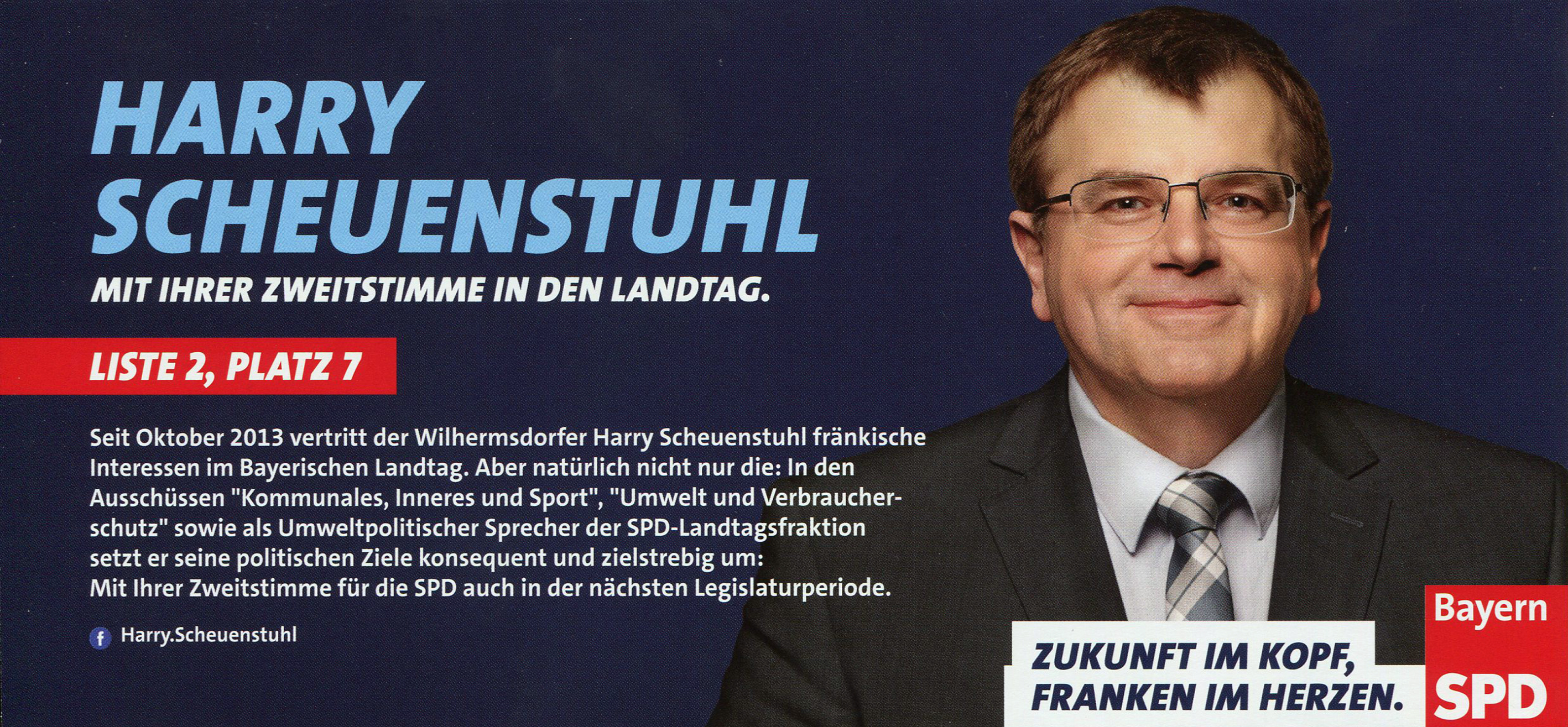 | Dateiinfo (Bild-Unterschrift und Info-Box, automatisch erstellt) | SPD-Wahlkampflyer von Harry Scheuenstuhl zur Landtagswahl 2018 Urheber: SPD Fürth<br><br>Lizenz: CC BY-SA 3.0 | ||