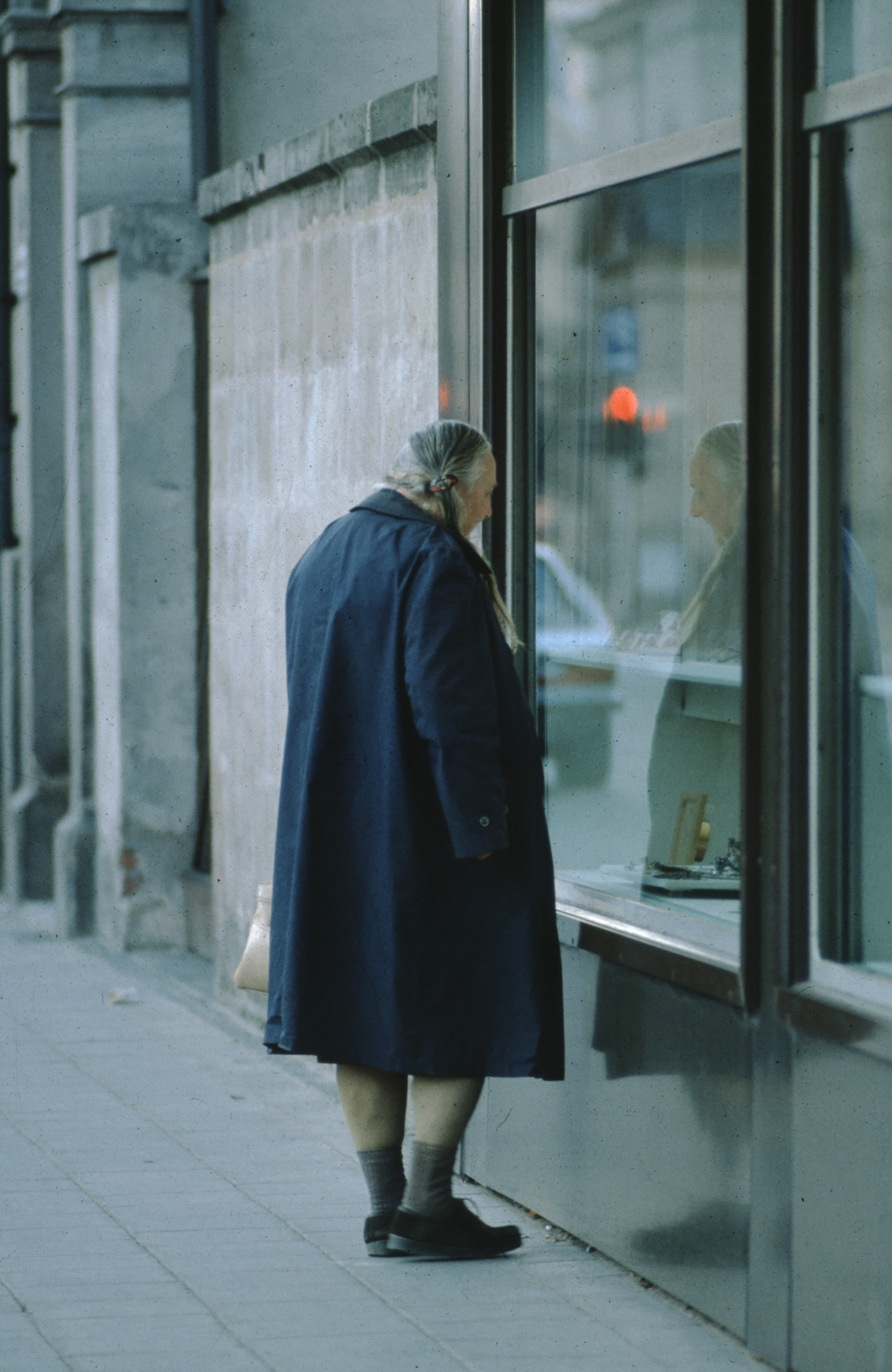 | Beschreibung | Toilettenfrau der öffentlichen Bedürfnisanstalt Jakobinenstraße 2 betrachtet die Auslage des Juwelierhaus Kuhnle. Im Hintergrund ist Königstraße 139 erkennbar. Aufnahme 1970er Jahre | ||