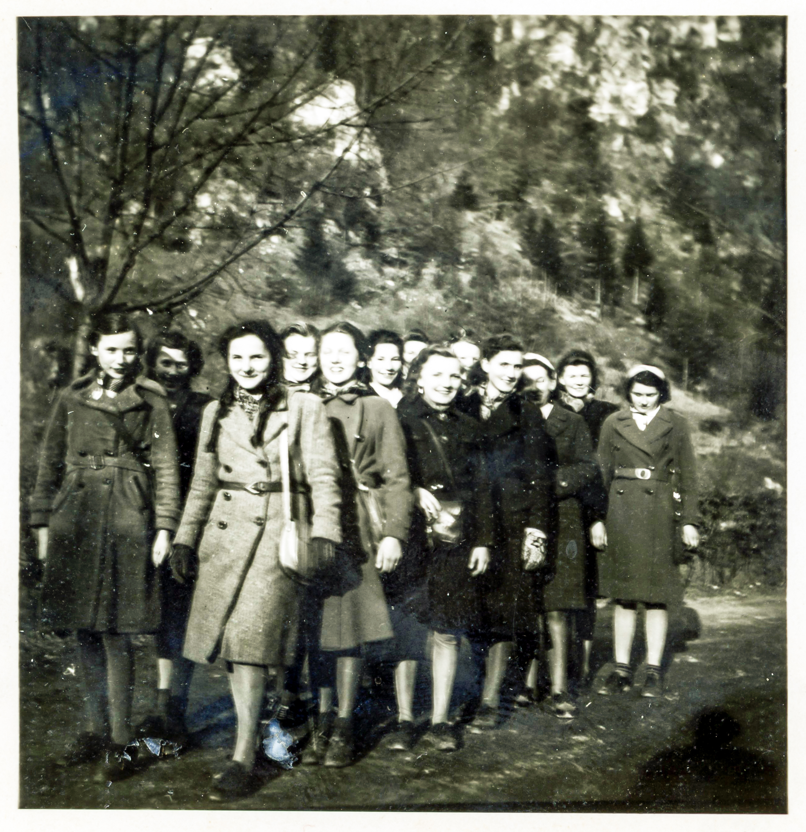 | Beschreibung | Schülerinnen der Edelmannschule / Haushaltungsschule in Fürth bei einem Schulausflug, ca. 1940 | ||