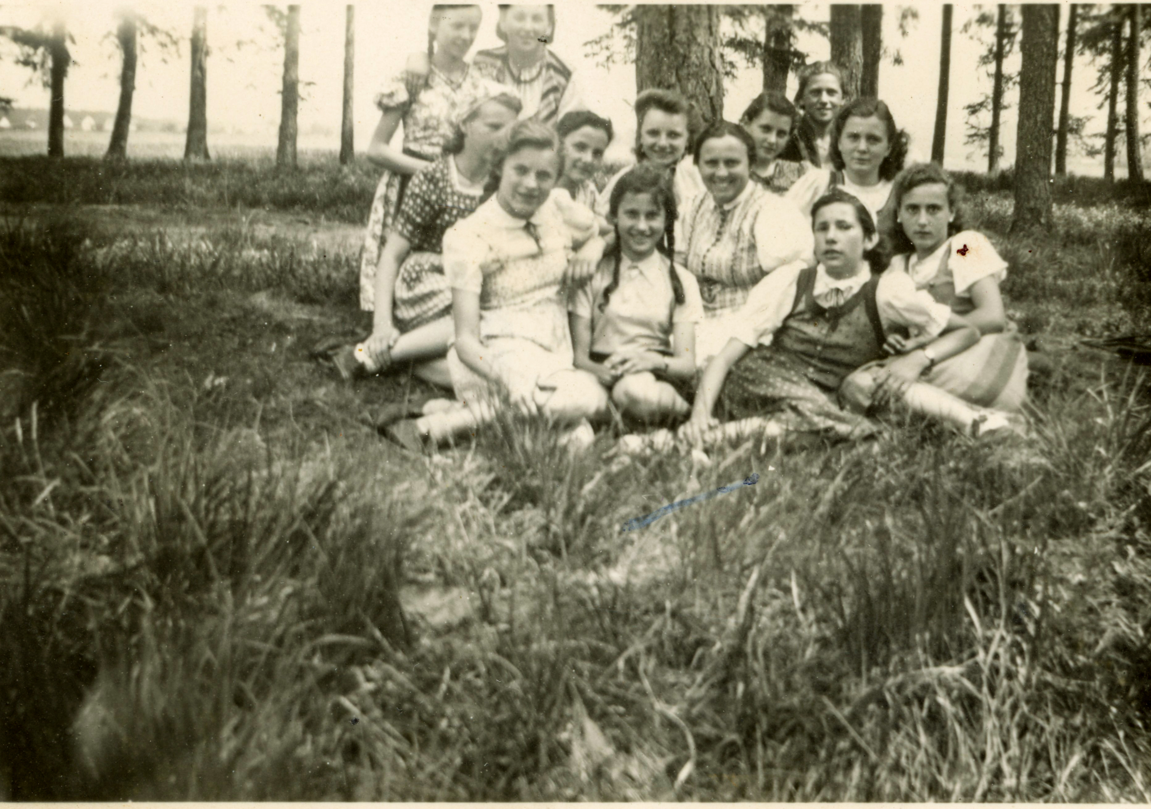 | Beschreibung | Schülerinnen der Edelmannschule / Haushaltungsschule in Fürth mit Frl. Ott, ca. 1940 | ||