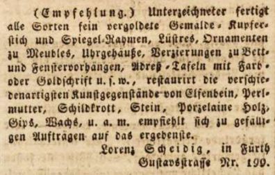| Beschreibung | Werbeannonce von Lorenz Scheidig, Dezember 1828 | ||