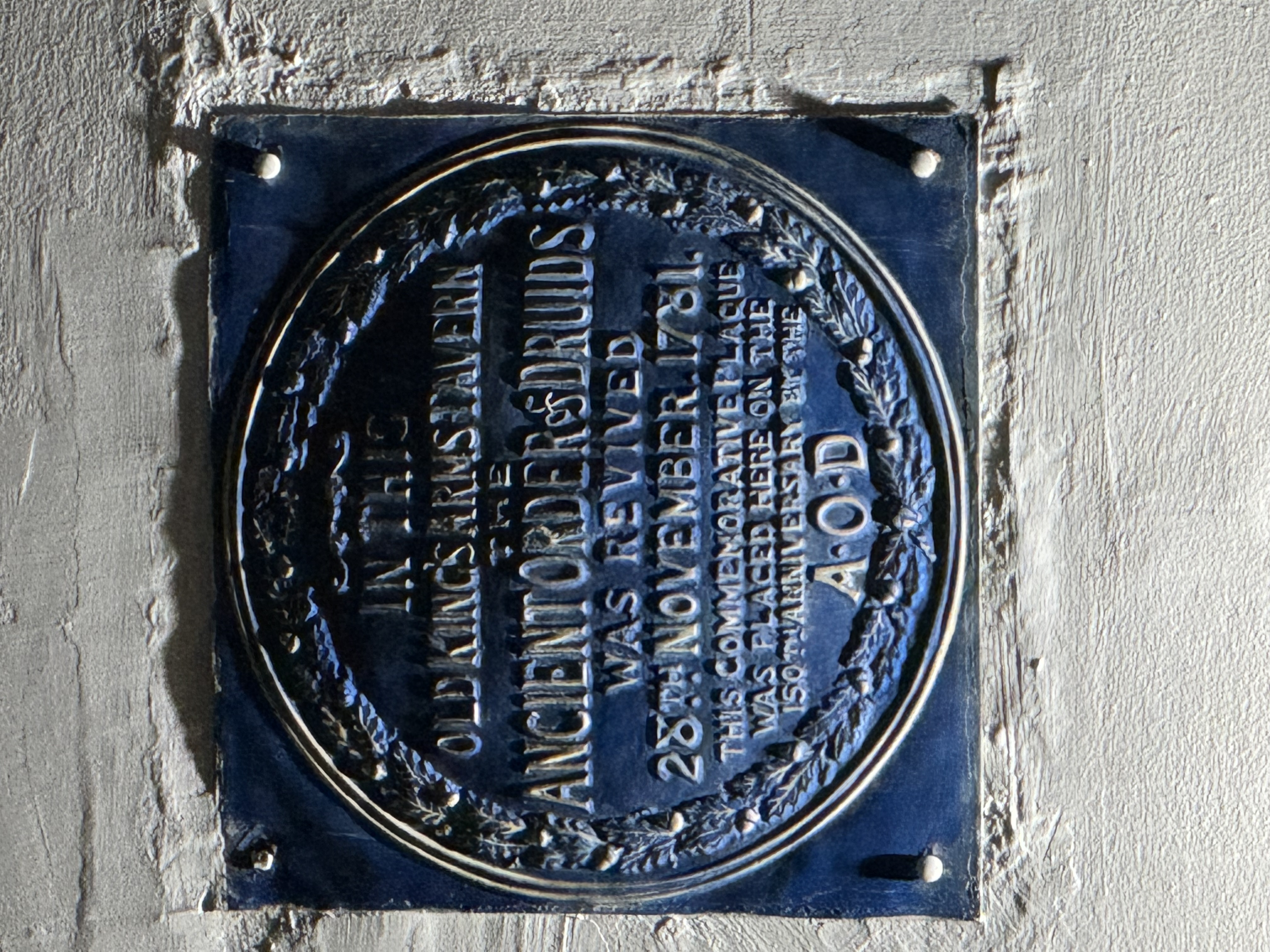 | Beschreibung | Schild an der Fassade der Taverne Old Kings Arms auf dem an die Gründung 1781 erinnert wird, Nov 2024 | ||