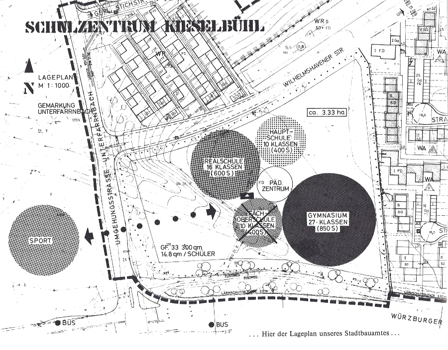 | Dateiinfo (Bild-Unterschrift und Info-Box, automatisch erstellt) | Planungen für einen Schulneubau auf dem Kieselbühl aus dem Jahr 1971 Urheber: Stadtbauamt Fürth<br> | ||