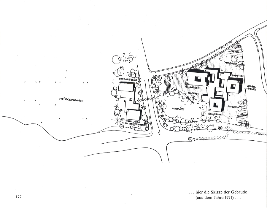 | Dateiinfo (Bild-Unterschrift und Info-Box, automatisch erstellt) | Planungen für einen Schulneubau auf dem Kieselbühl aus dem Jahr 1971 Urheber: unbekannt<br> | ||