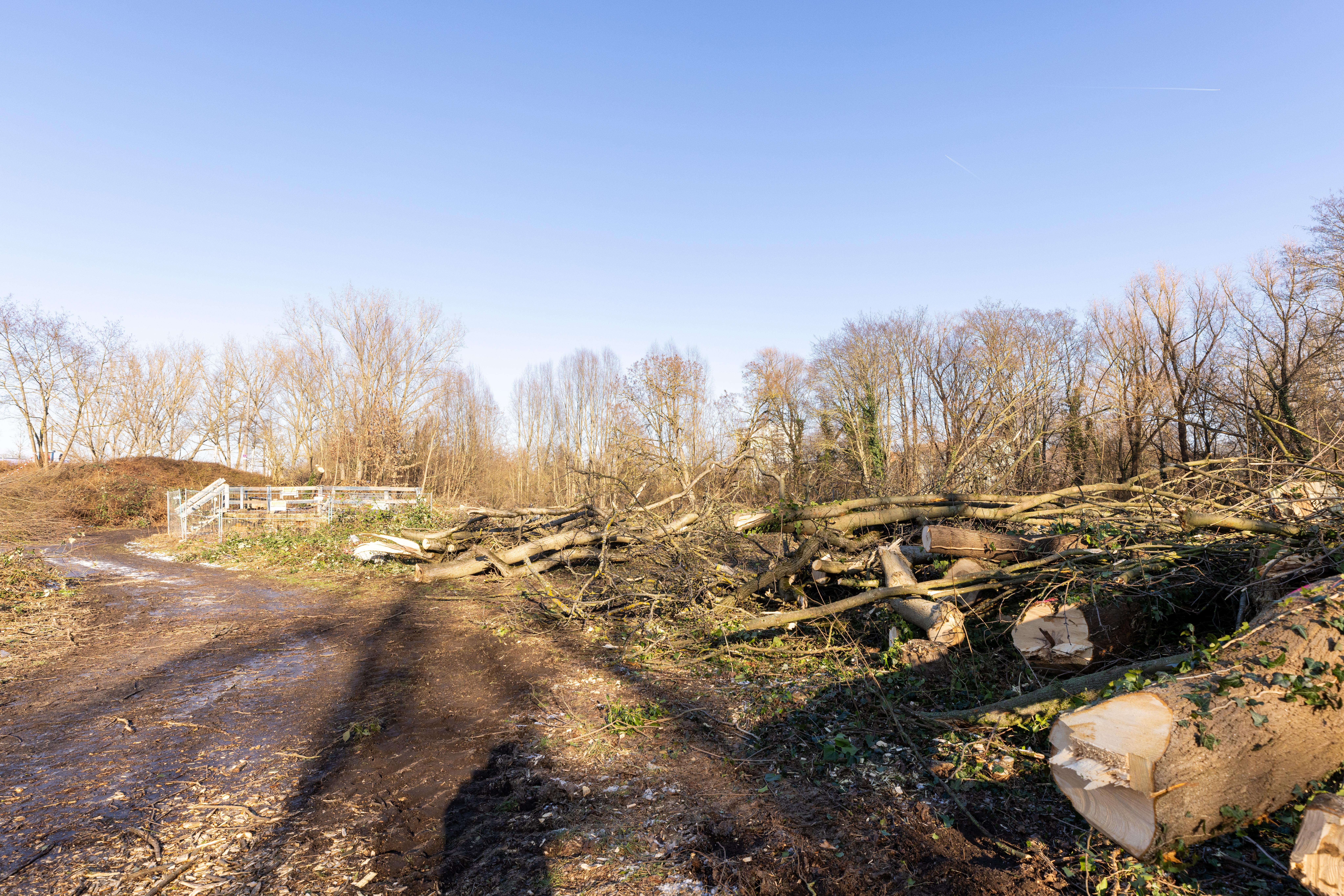 | Beschreibung | Rodungsarbeiten auf dem Baufeld des künftigen Schliemann-Gymnasiums, Jan. 2024 | ||