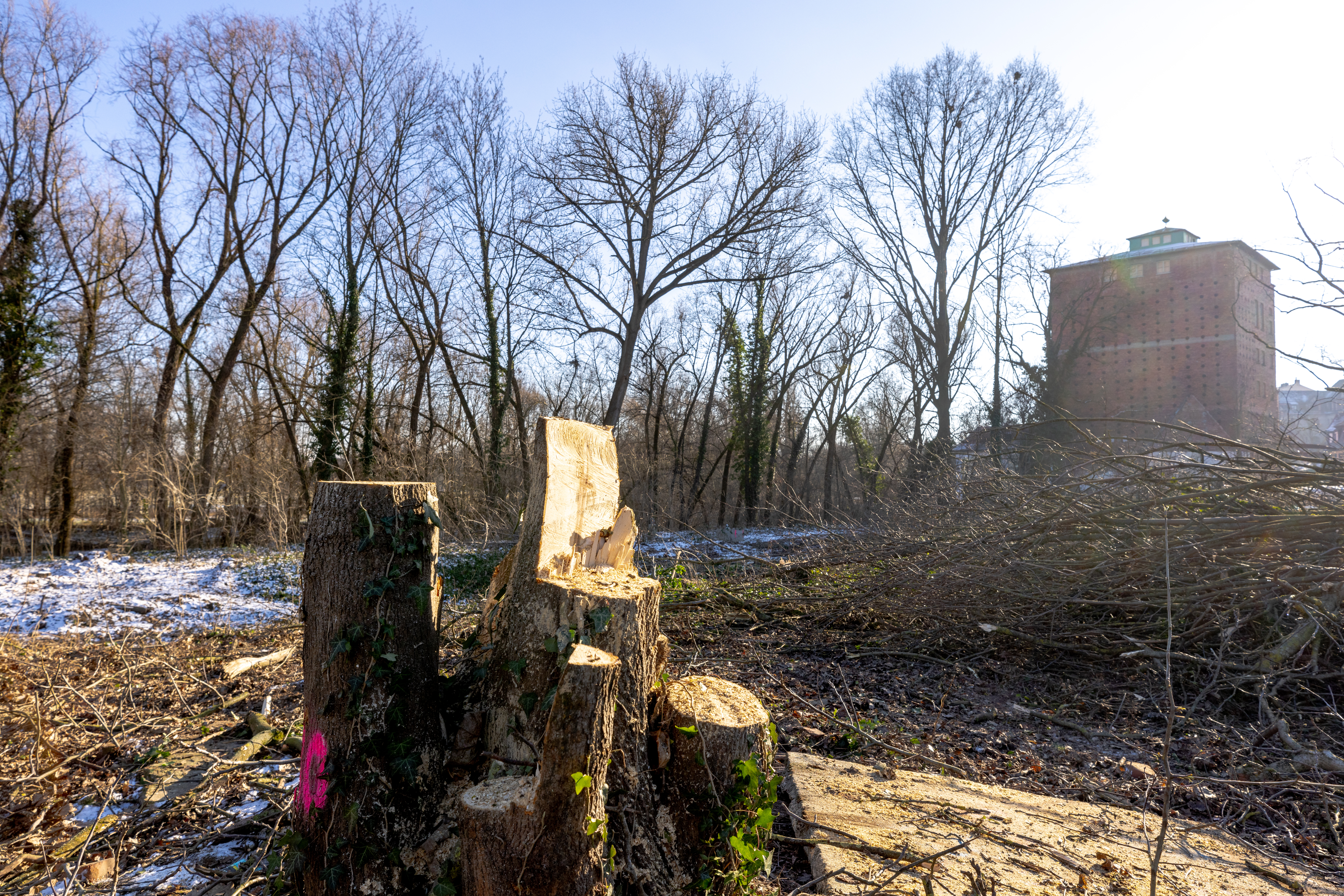 | Beschreibung | Rodungsarbeiten auf dem Baufeld des künftigen Schliemann-Gymnasiums, Jan. 2024 | ||