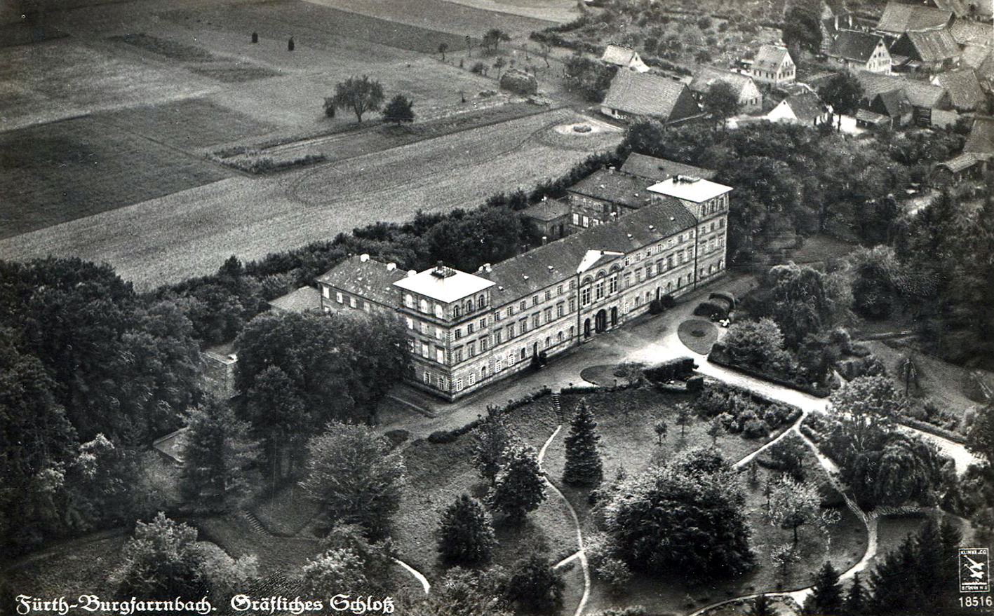 | Beschreibung | Schloss Burgfarrnbach, Luftaufnahme, undatiert | ||