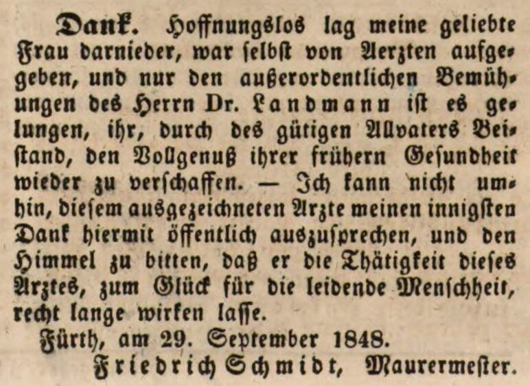 | Quellangaben | Fürther Tagblatt, 30.09.1848 - online-Digitalisat der Bayerischen Staatsbibliothek | ||