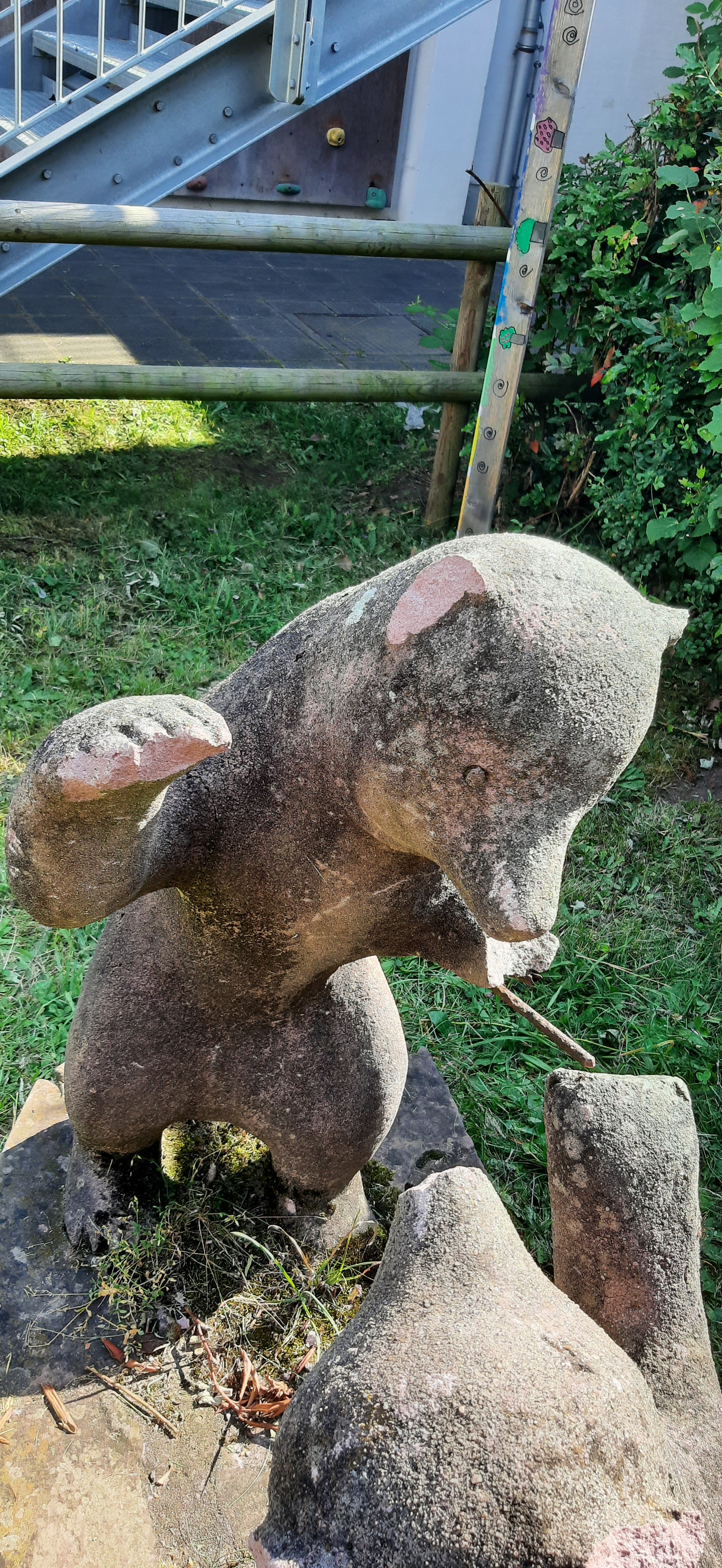 | Beschreibung | Freiplastik "Bärengruppe" von Gudrun Kunstmann auf dem Gelände der Grundschule Friedrich-Ebert-Schule, Zustand 2024 nach Vandalismus durch Schüler, Detailansicht | ||