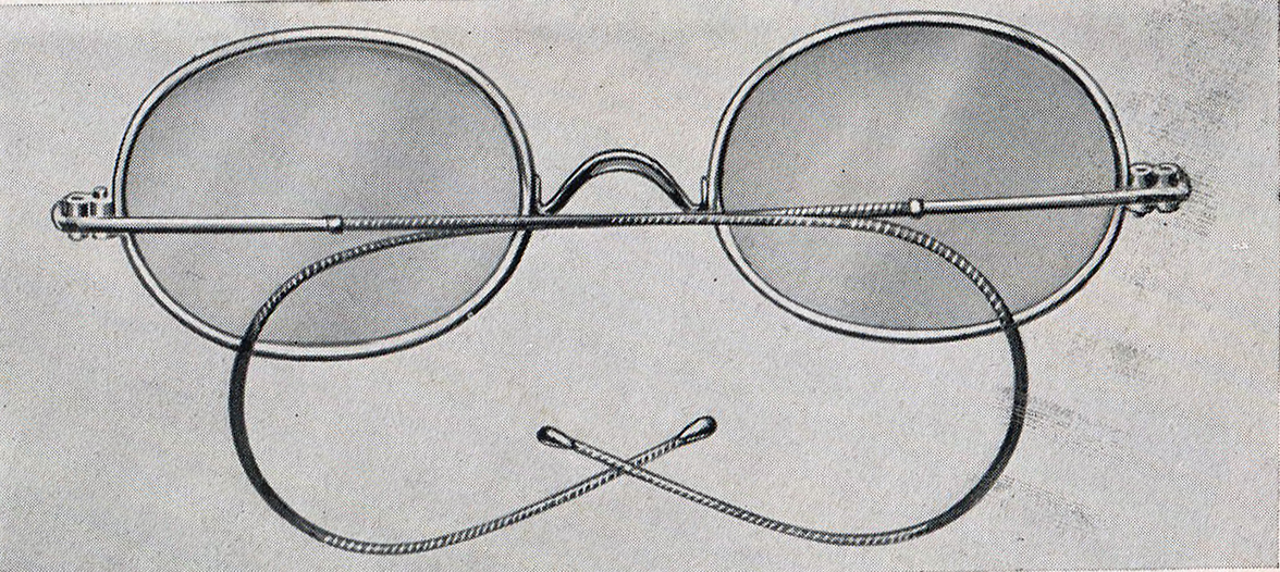 | Beschreibung | Brillenmodell der Schutzbrillenfabrik Fürth und optische Industrie-Anstalt Chr. Kraus in der Theaterstraße 49, ca. 1950 | ||
