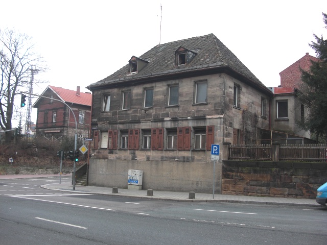 | Beschreibung | Denkmalgeschütztes Gebäude Schwabacher Straße 53, sog. "Erstes Haus der Südstadt" (derzeit in Sanierung), links dahinter das Gebäude des ehemaligen L.A.G. Bahnhofs | ||