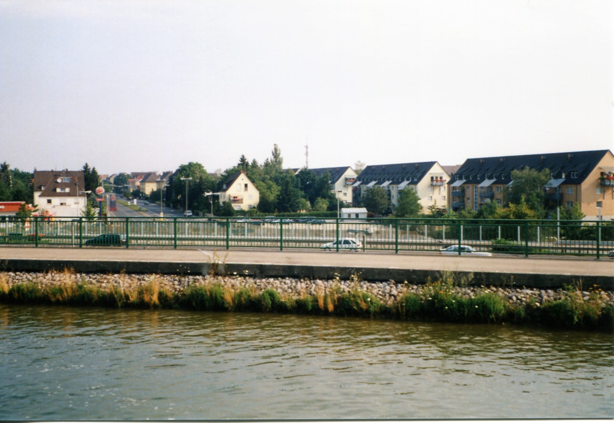| Beschreibung | 2001: Blick in die Schwabacher Straße (rechts die schon modernisierten ehemaligen US Wohnblocks) von der Trogbrücke am Main-Donau-Kanal aus | ||