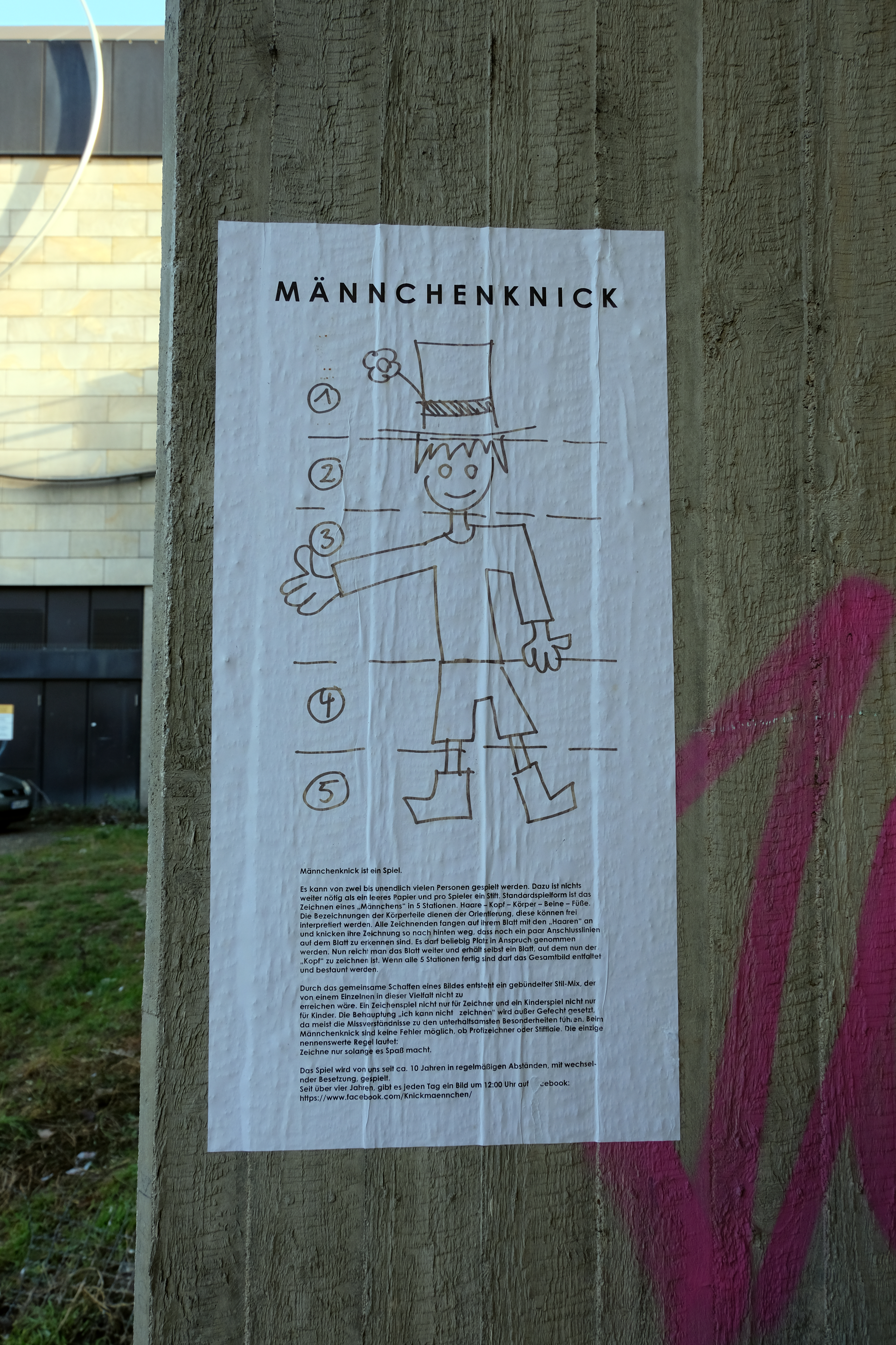 | Beschreibung | Streetart mit Männchenknick bzw. Knickmännchen an der Schwabacher Unterführung, Dez. 2020 | ||