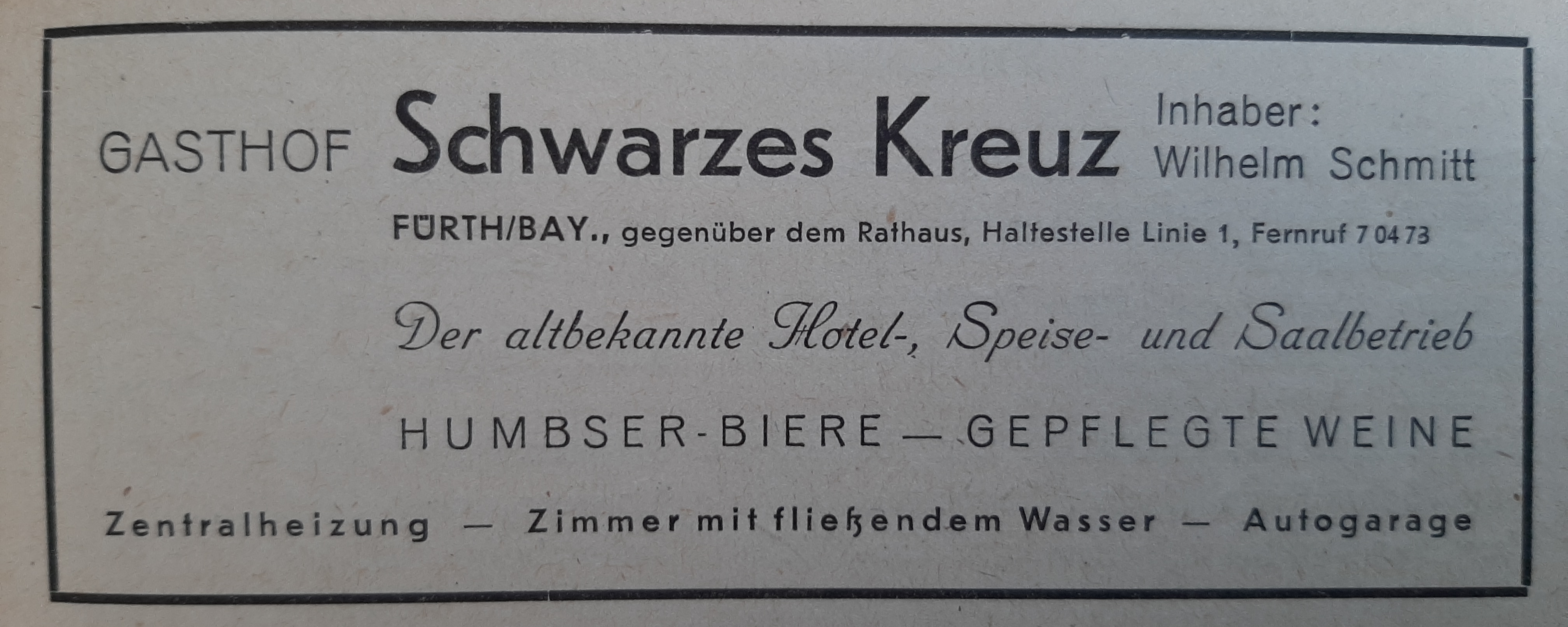 | Beschreibung | Werbeanzeige für den Gasthof "Schwarzes Kreuz", 1949 | ||
