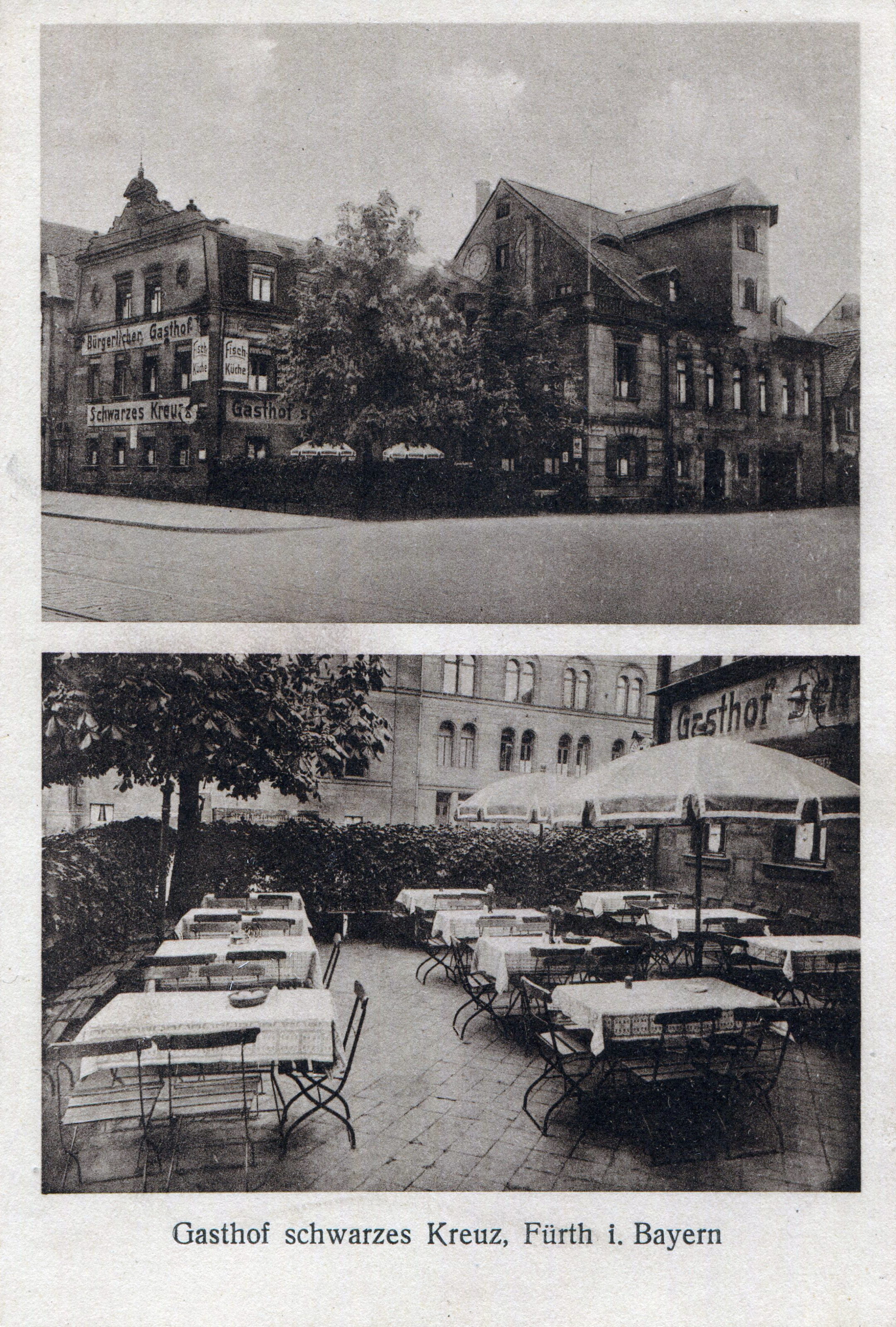 | Beschreibung | Gaststätte Schwarzes Kreuz mit Aussengarten, ca. 1930 | ||