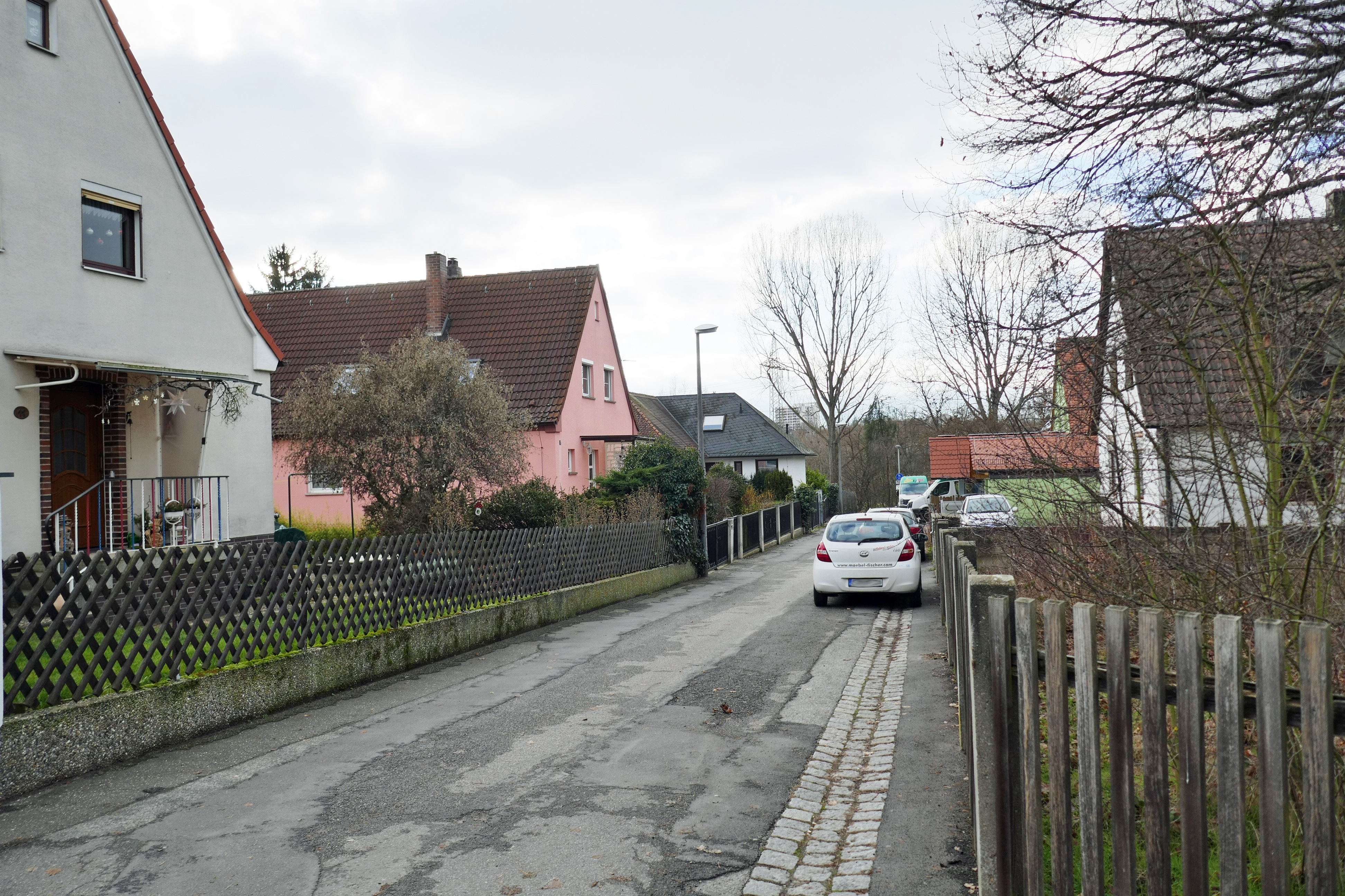 | Beschreibung | Blick von der Spitzwiesenstraße nach Westen in die Seerosenstraße, links Haus Nr. 13 (2019) | ||