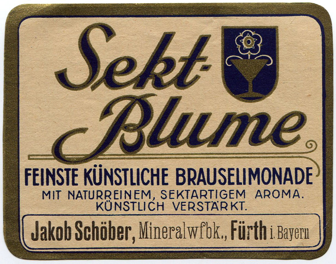 | Beschreibung | Flaschenetikett für künstliche Brauselimonade der Marke "Sekt-Blume" von Jakob Schöber | ||