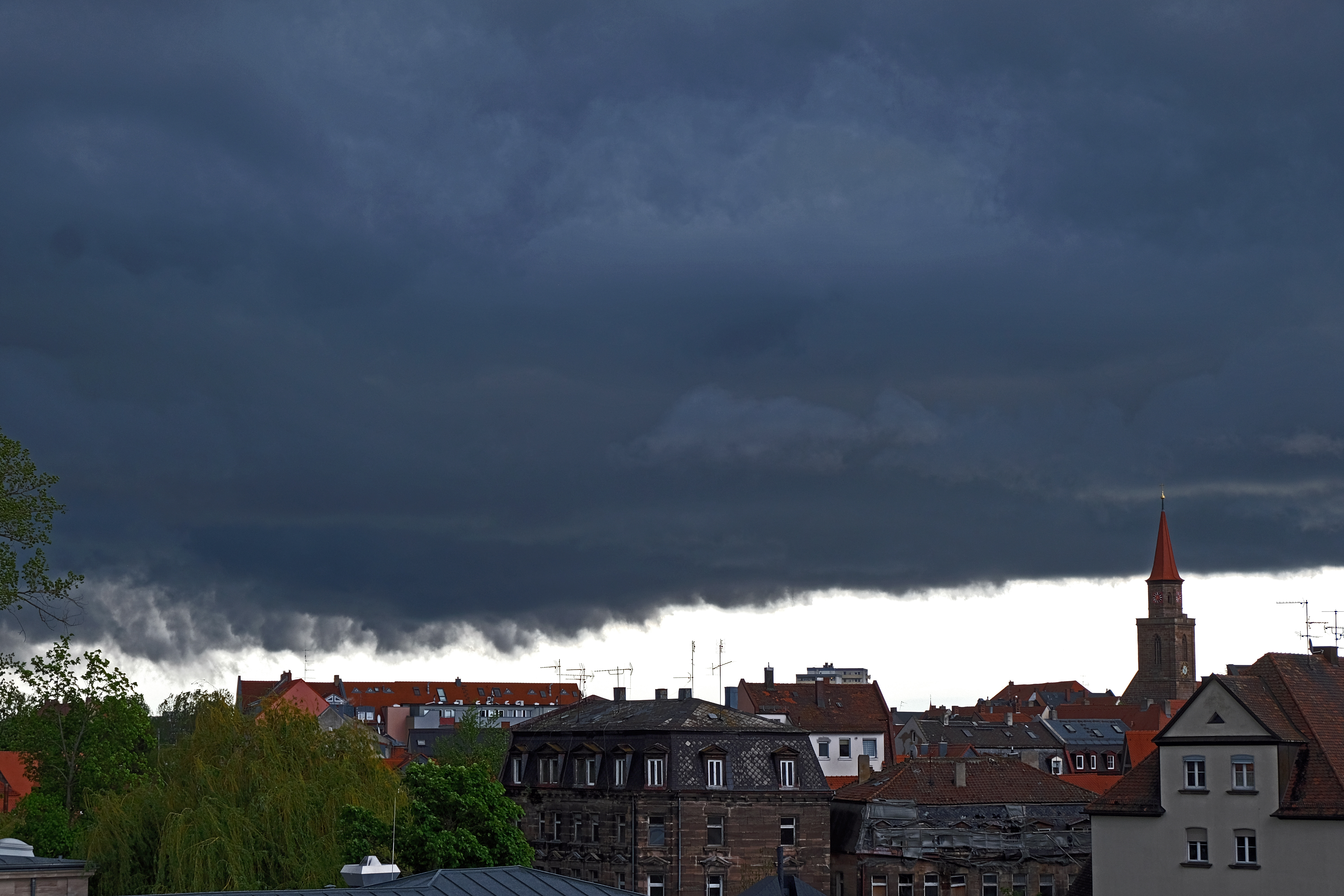 | Beschreibung | Sog. Shelf Clouds über der Fürther Altstadt, April 2019 | ||