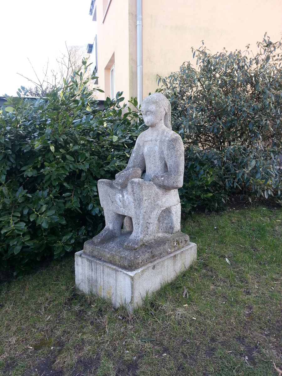 | Beschreibung | Steinplastik Mädchen mit Taube, Wilhelm Manfred Raumberger, 1964 | ||