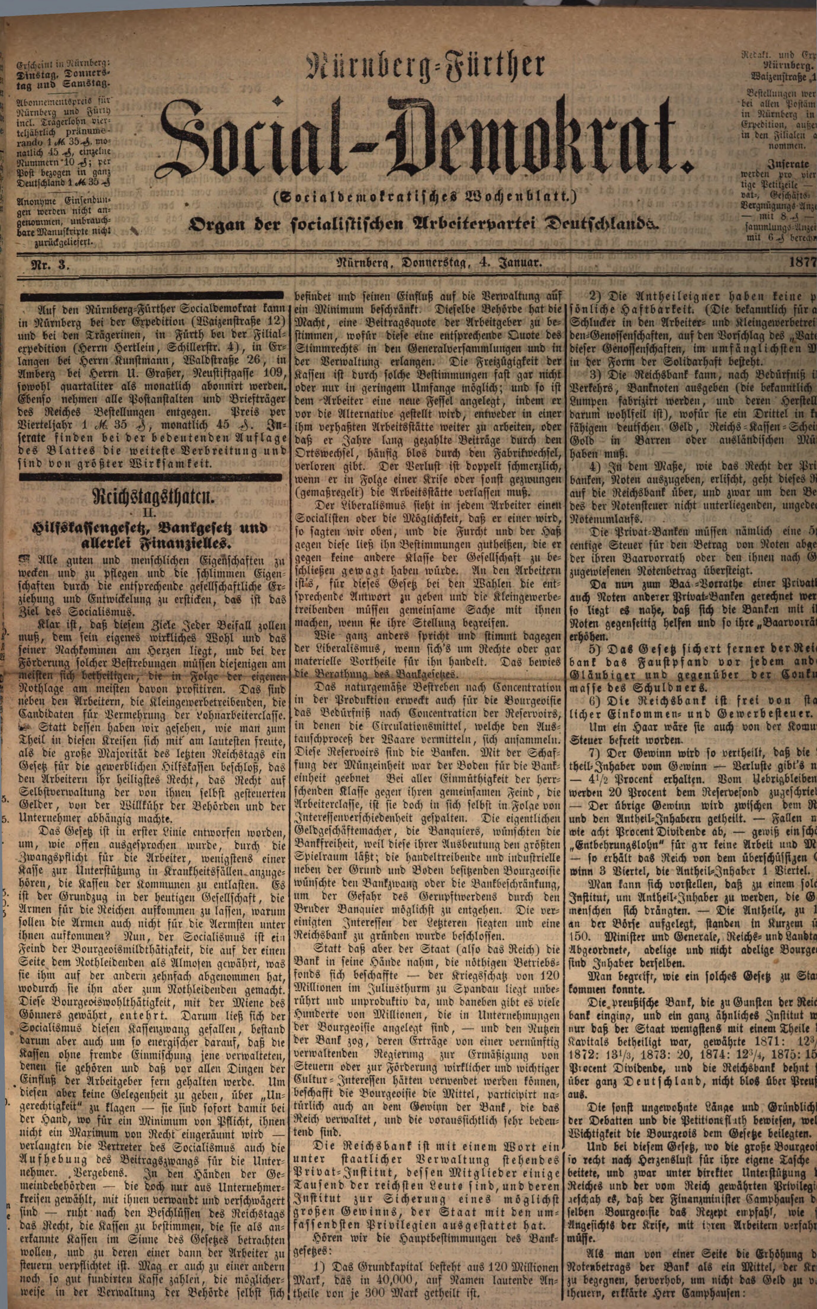 | Dateiinfo (Bild-Unterschrift und Info-Box, automatisch erstellt) | Titelblatt der Tageszeitung "Nürnberg-Fürther Social-Demokrat" vom 4. Januar 1877 Lizenz: NoC-NC 1.0 | ||