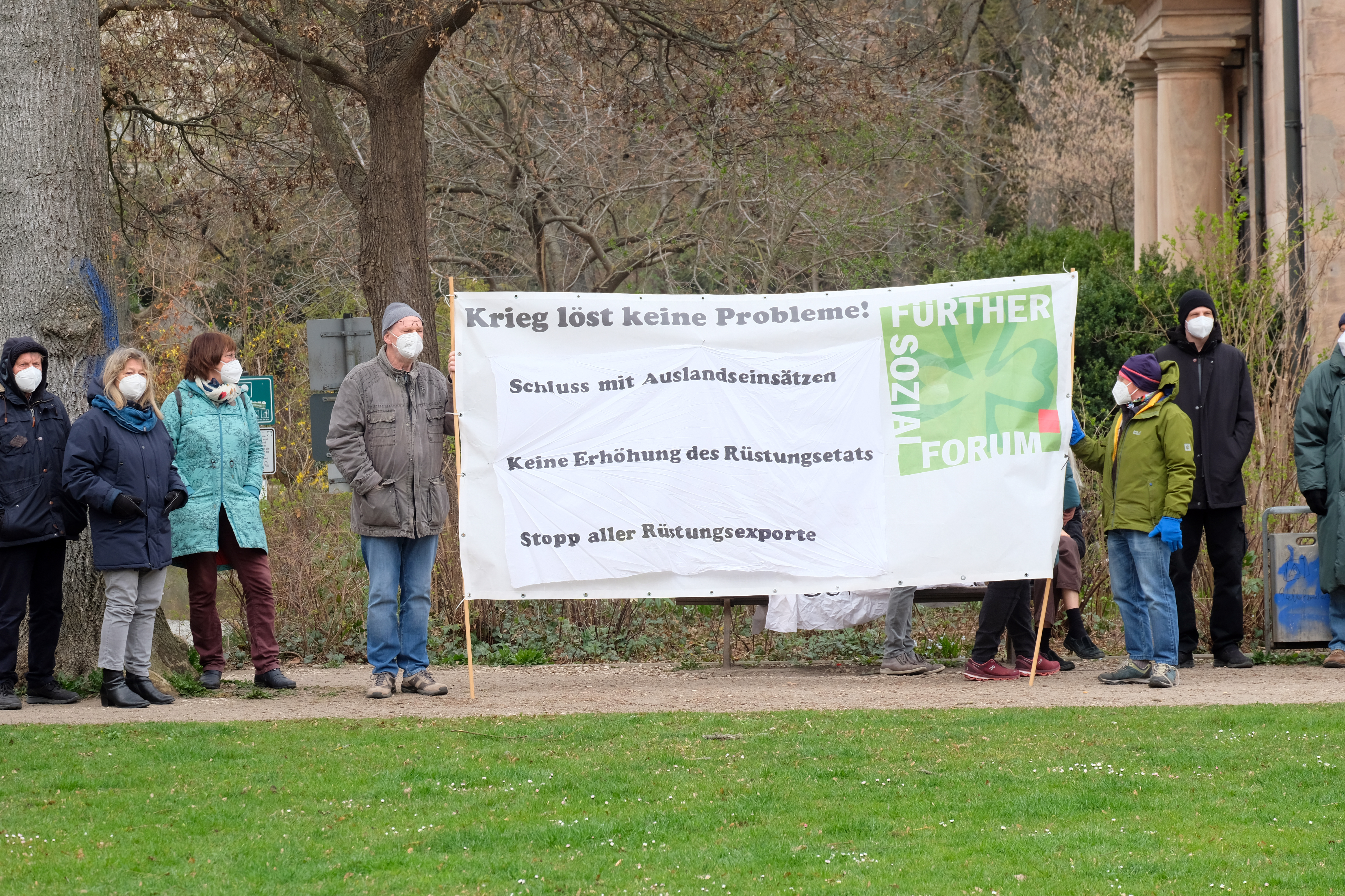 | Beschreibung | Fürther Sozialforum beim Ostermarsch - am Transparent Siegfried Imholz und Stephan Stadlbauer, April 2021 | ||