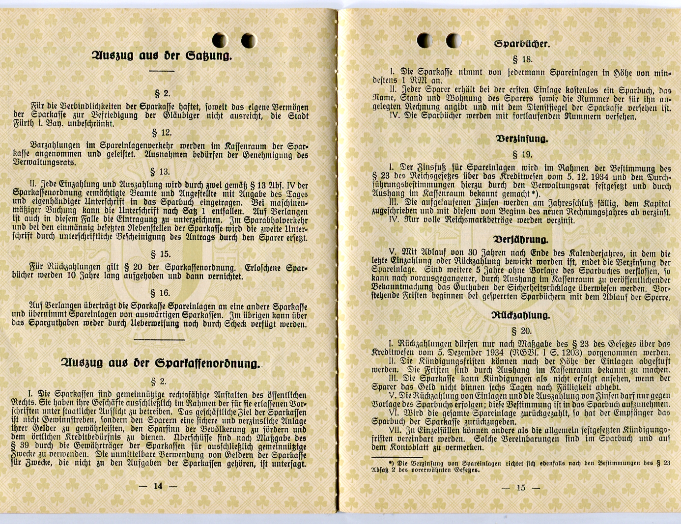 historisches Sparbuch der Stadtsparkasse Fürth vom Januar 1955 noch mit "Reichsmark" Zinsberechnung auf der letzten Seite, somit wurden Sparbuch Vordrucke vor 1948 (DM Einführung) Mitte der 1950iger immer noch benutzt.
